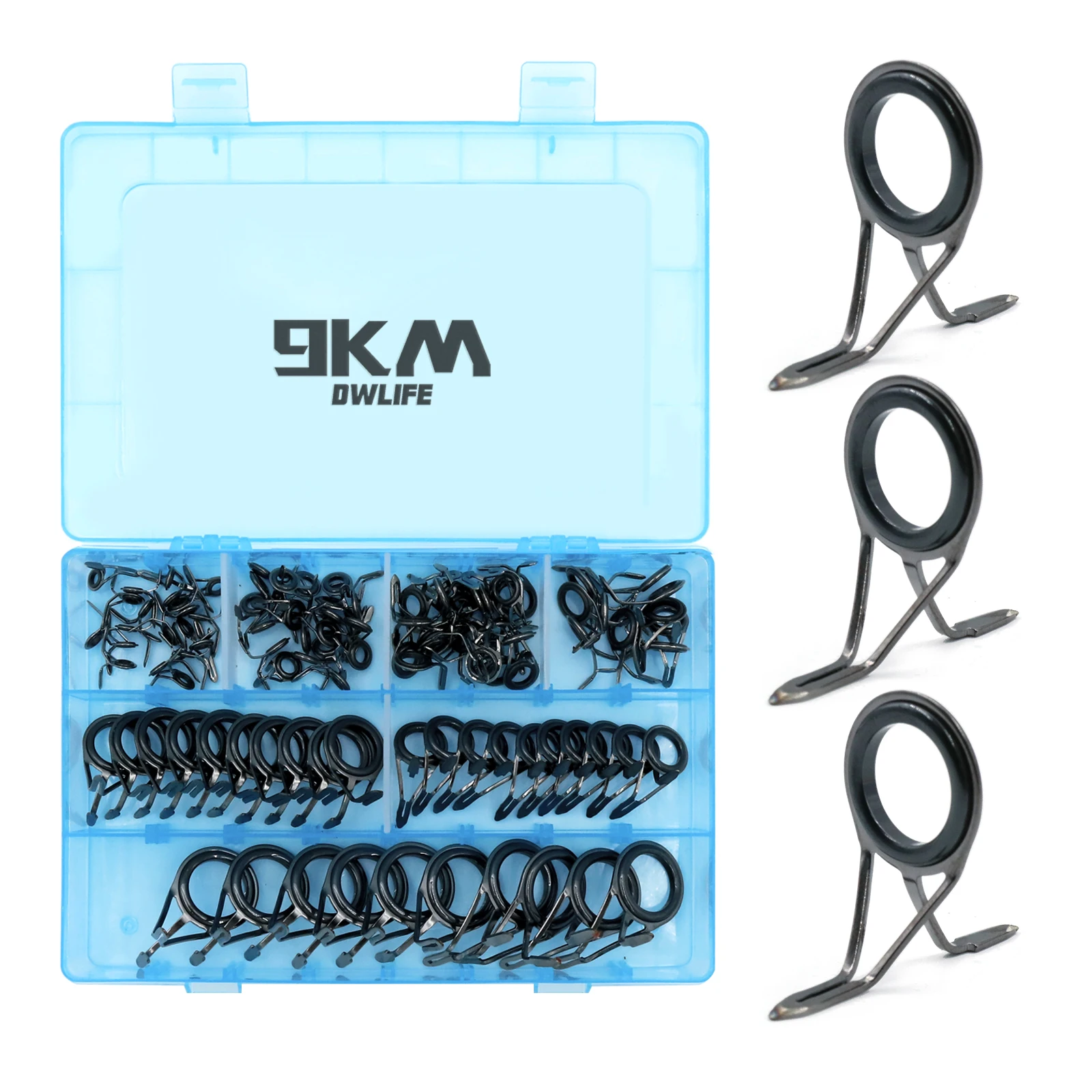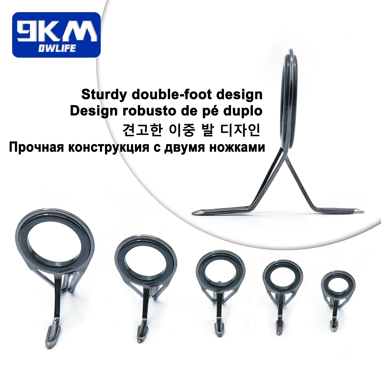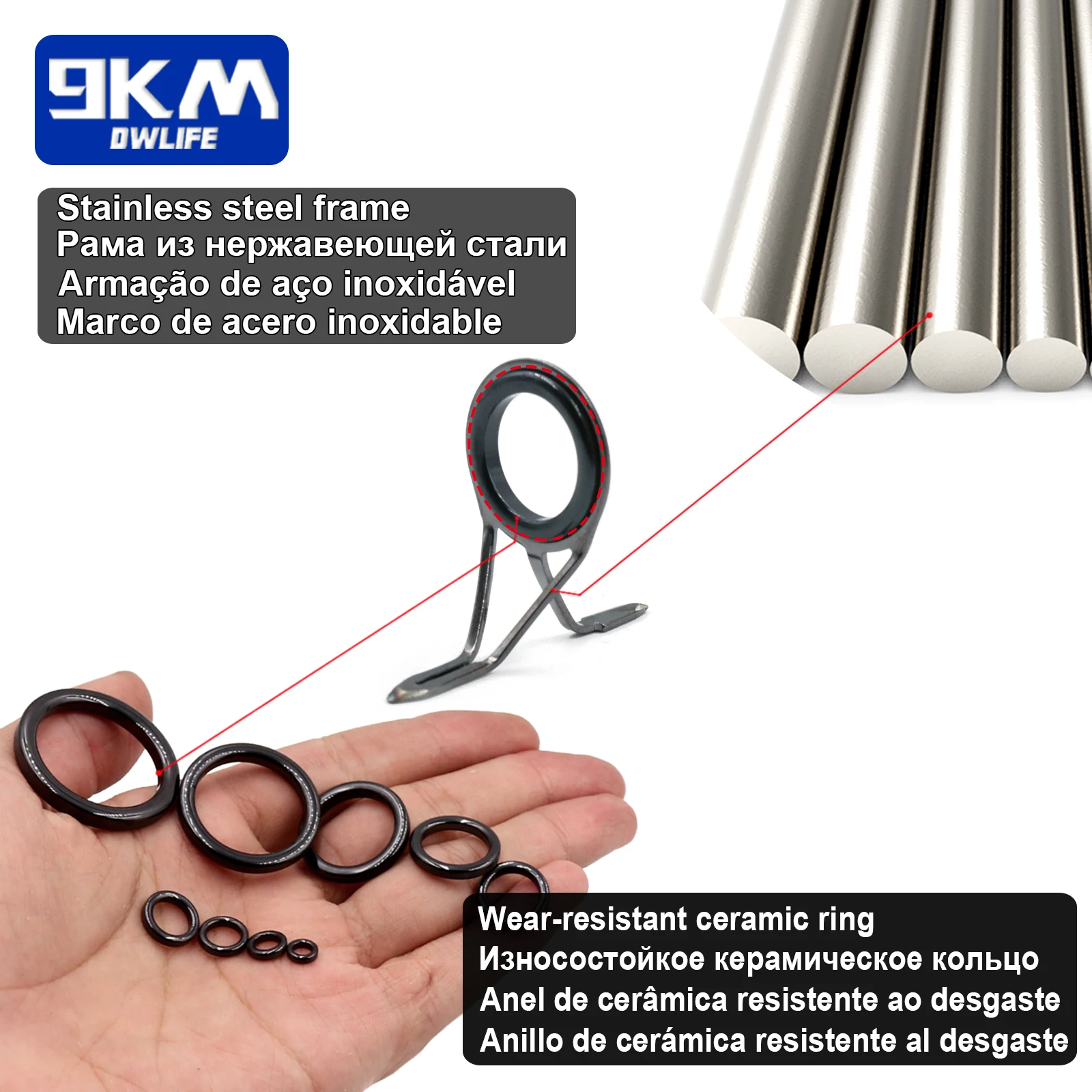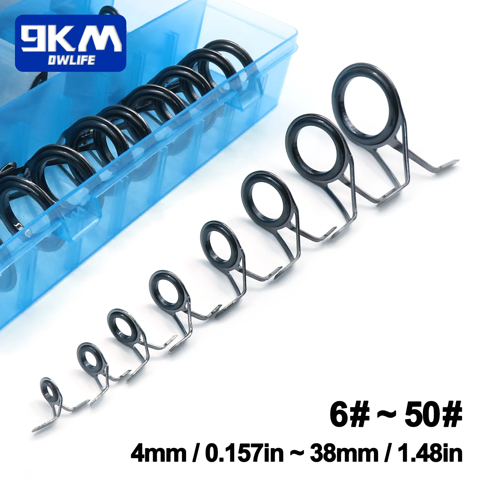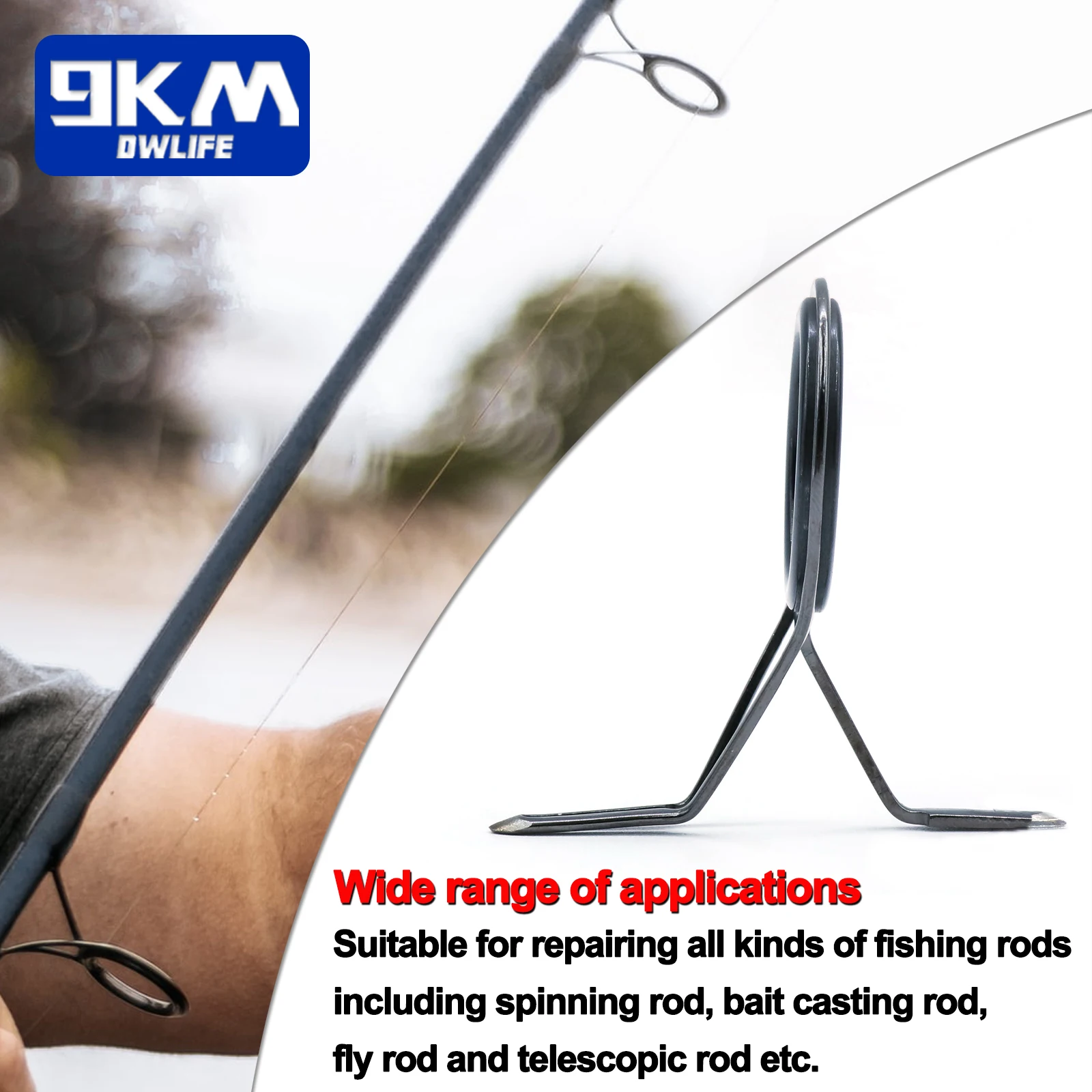 Kit de reparación de puntas de guía de caña DWLIFE de 9KM: Las puntas de guía de caña de pescar están hechas de un marco de acero inoxidable con anillo de cerámica, los ojales de 10 tamaños cumplen con los distintos tipos de cañas de pescar propiedad de pescadores profesionales.Tanto la pesca en agua dulce como en agua salada/mar.