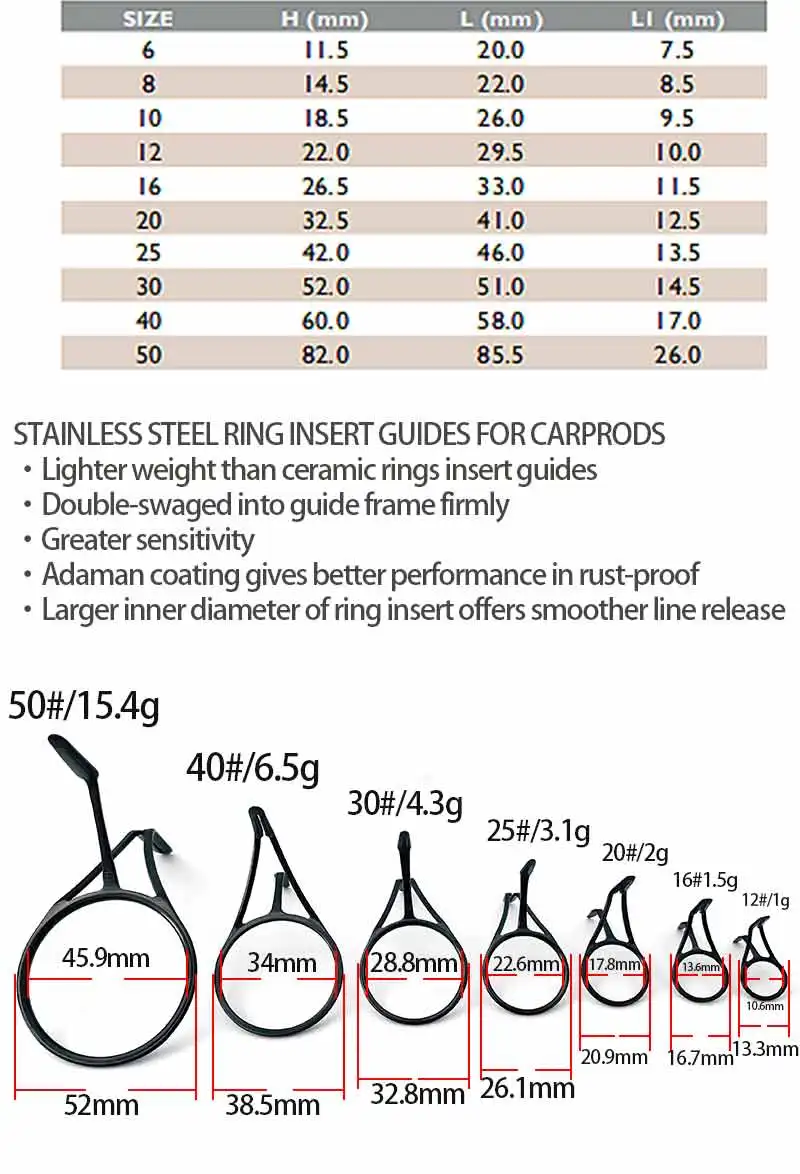Todos los anillos de caña Seaguide TDG originales. Ideal para usar en cañas de río grandes... para esta la usaré para construir mis cañas de barbel.