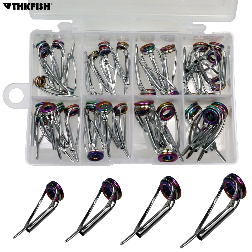 Guías de caña de pescar, Kit de reparación de caña de fundición giratoria, guías de construcción, arcoíris plateado, 1,8mm-3,2mm, 40 unids/set por juego