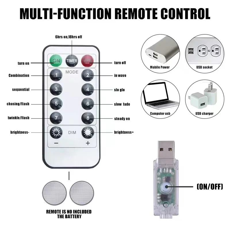 1. El control remoto no incluye pilas,USB tiene botones para cambiar de modo.