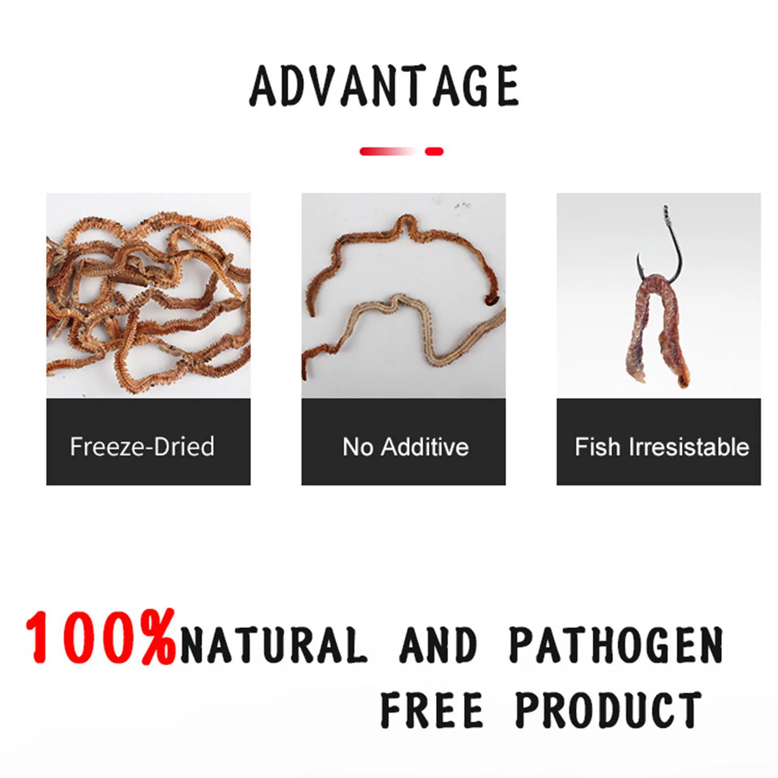 Comida seductora para peces: The señuelo de pesca de gusano secoestá especialmente formulado para atraer peces.Sus cebos de pescado naturales de gusanos rojos secos son irresistibles para los animales acuáticos, lo que garantiza una experiencia de pesca exitosa.