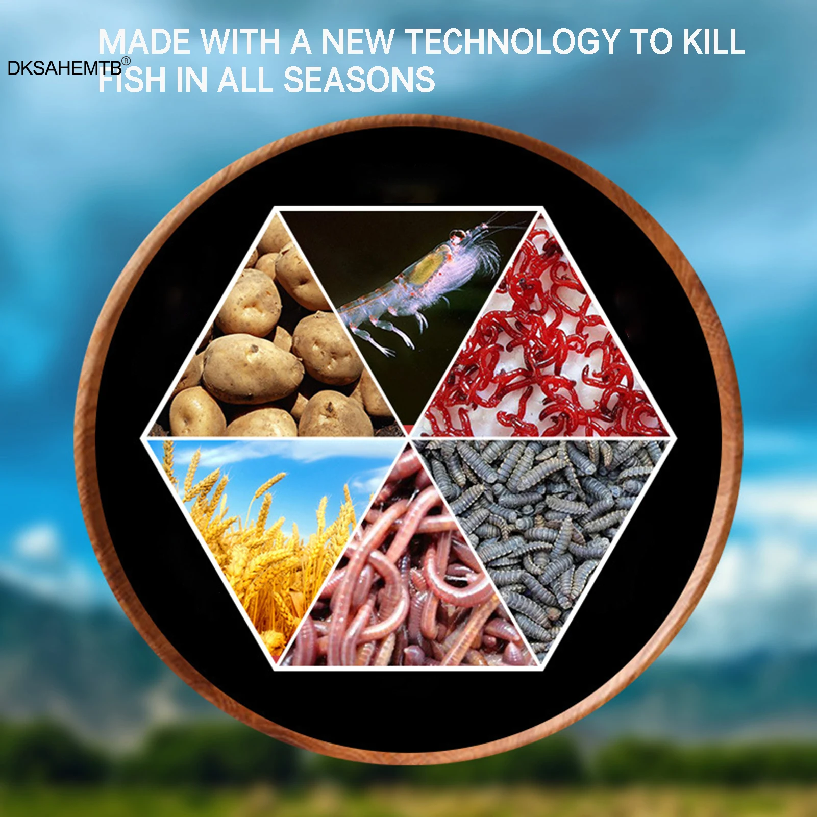 3.Material: Está formulado con proteínas animales y una variedad de granos, con buena palatabilidad. Contiene mucha fibra y el cebo tiene una fuerte fijación del anzuelo.