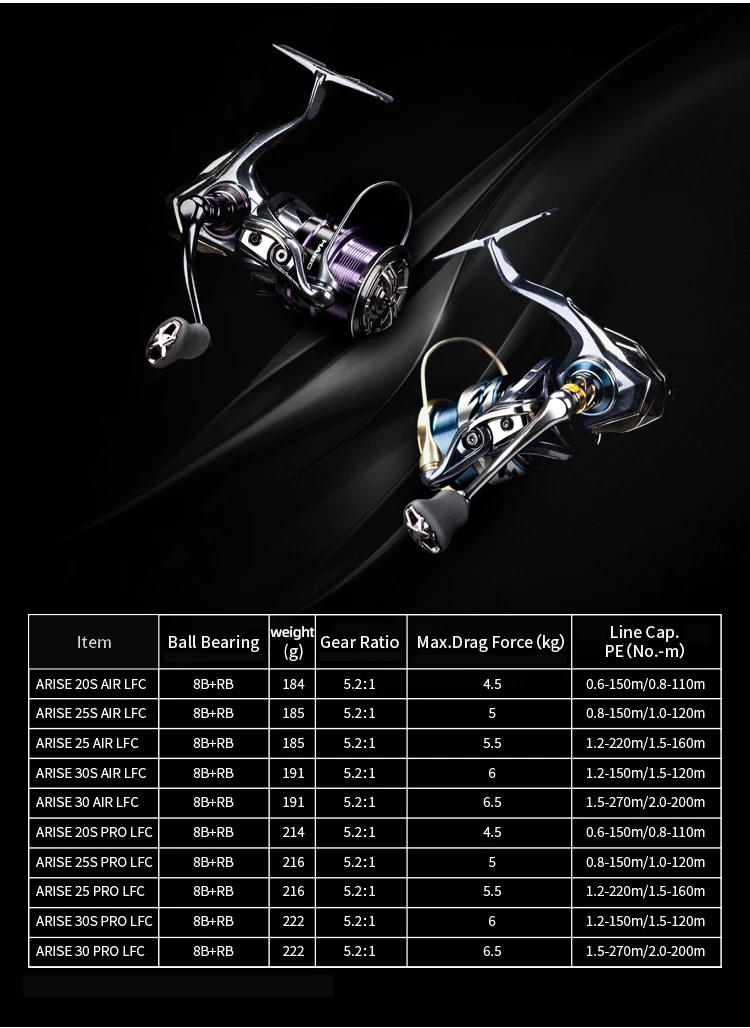 23 NUEVO Haibo ARISE LFC Spinning Reel 8B + RB 5,2: 1 181KG-222KG Fibra de carbono Agua dulce Mar Pesca Carrete Molinete De Pesca