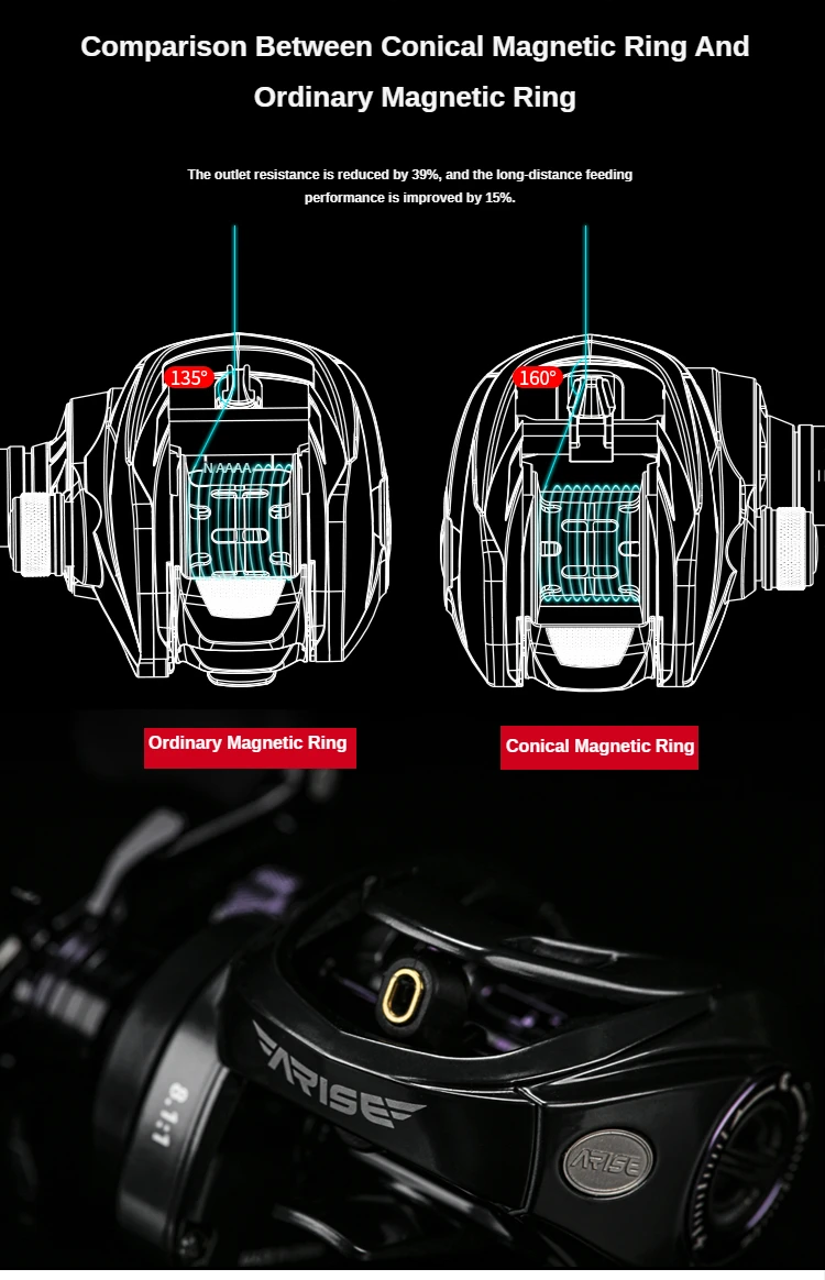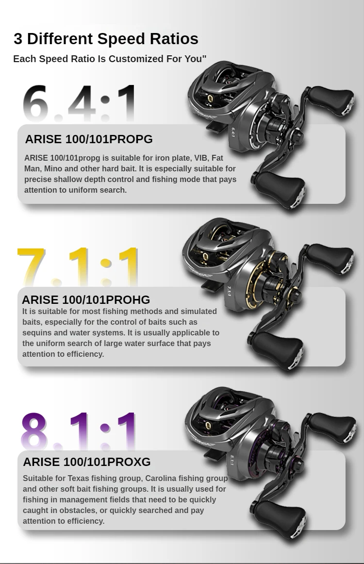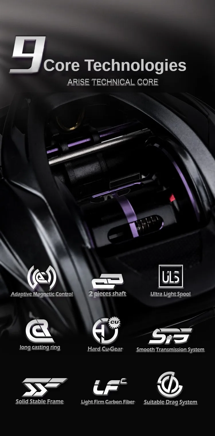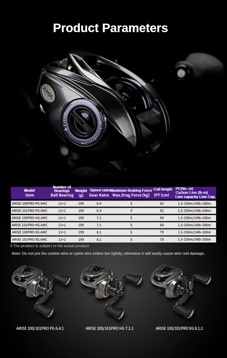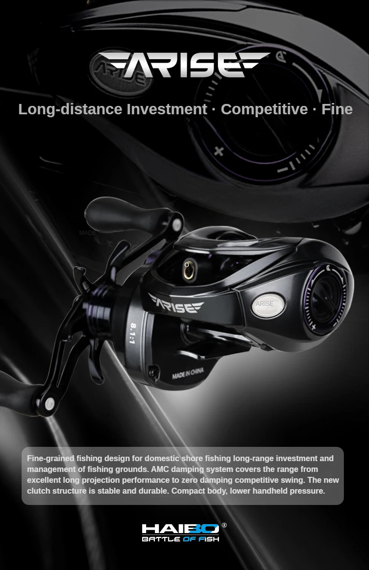 Haibo 2023 ARISE AMC Baitcasting carrete de pesca 11B + 1RB 6,4: 1-8,1: 1 agua dulce mar Carretilha De Pesca de fundición larga para cabeza de serpiente