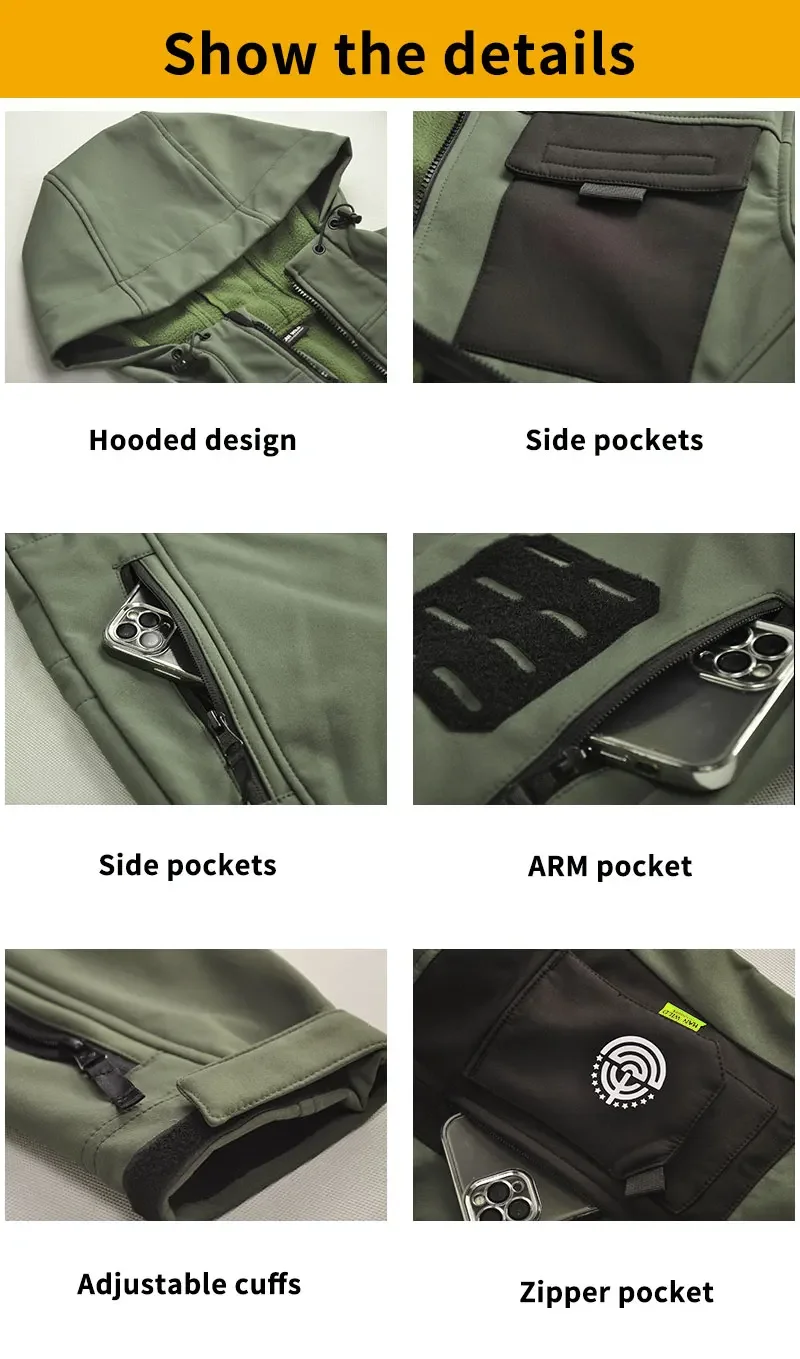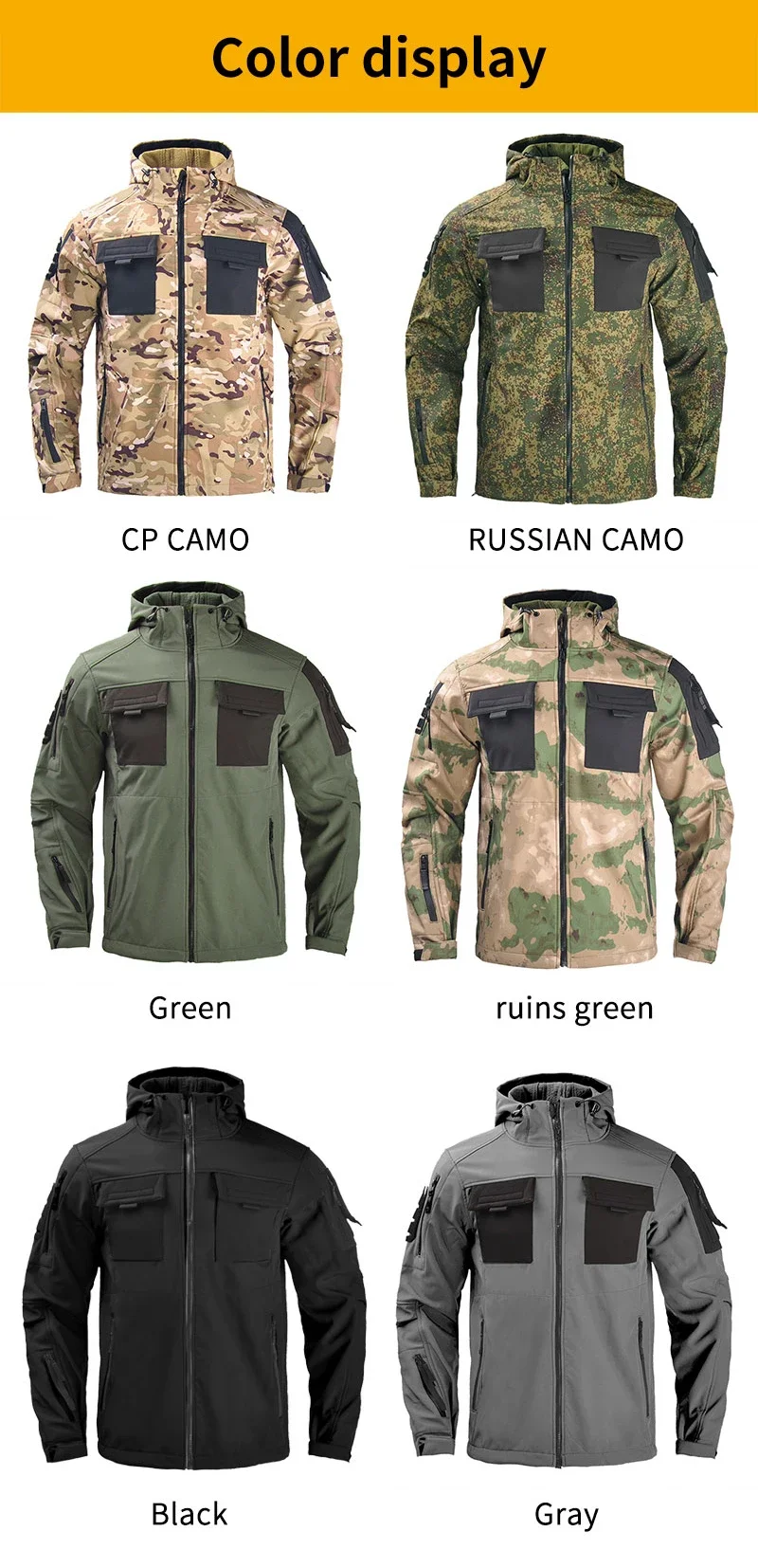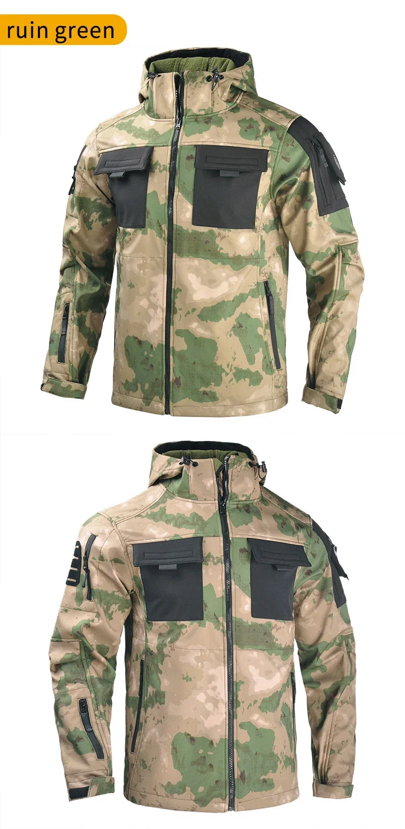 HAN WILD Hiking Tactical Coat Men Softshell Jackets Combat Fleece Jacket Men Clothing Windproof Coats Airsoft Camping Hunting