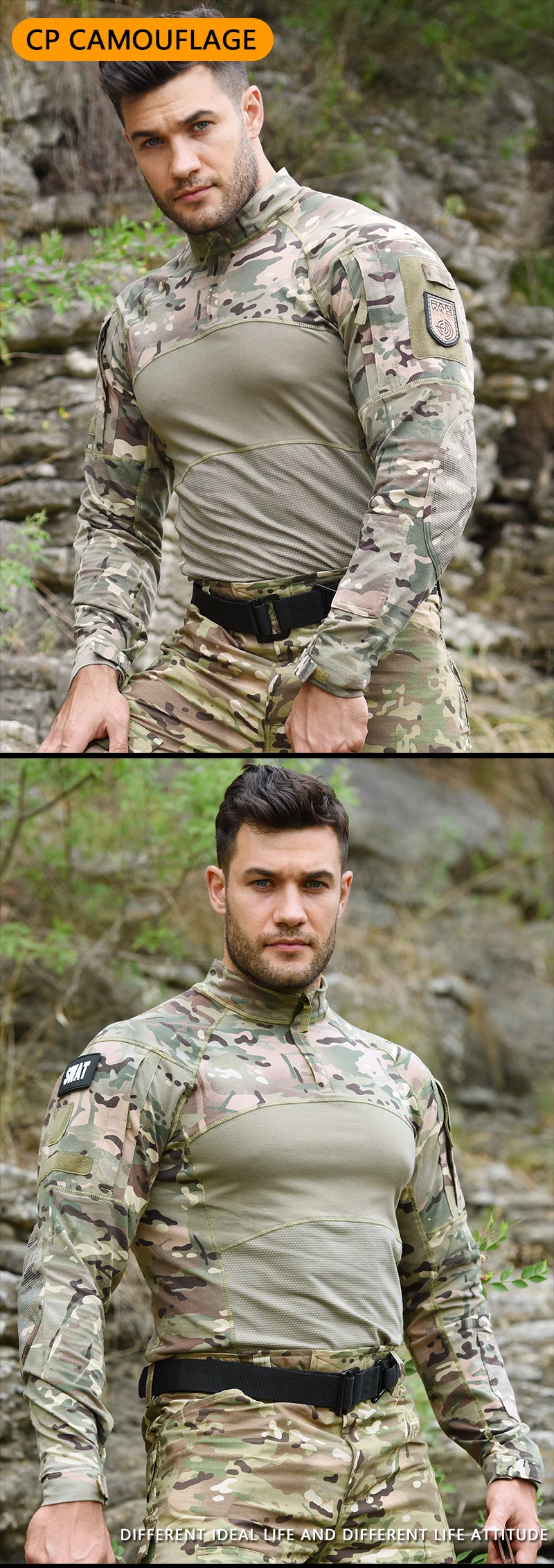 HAN WILD-camisas tácticas de algodón para hombre, ropa de escalada, camisa de combate elástica, ropa de Camping Softair de manga larga para senderismo