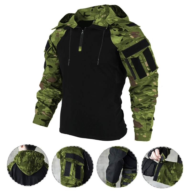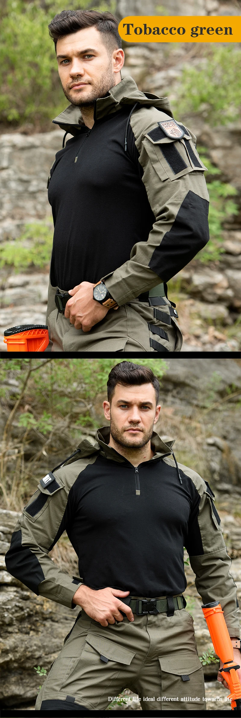 HAN WILD-Camiseta de algodón de camuflaje para escalada y combate, camisa táctica para hombre, resistente al desgaste, Airsoft, Paintball, ropa de caza y acampada