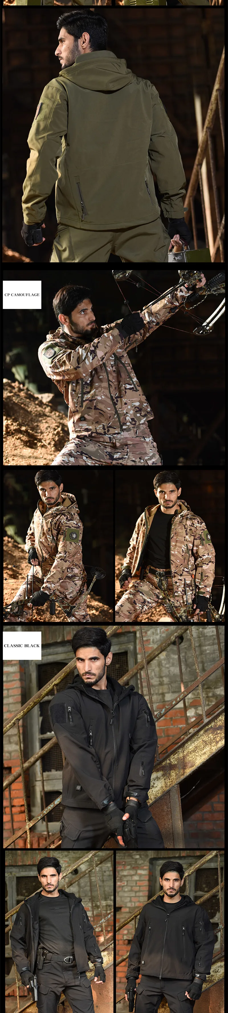 Chaquetas de caza de piel de tiburón HAN WILD, chaqueta táctica militar de concha para hombre, ropa de lana impermeable, abrigo Multicam, cortavientos 4XL