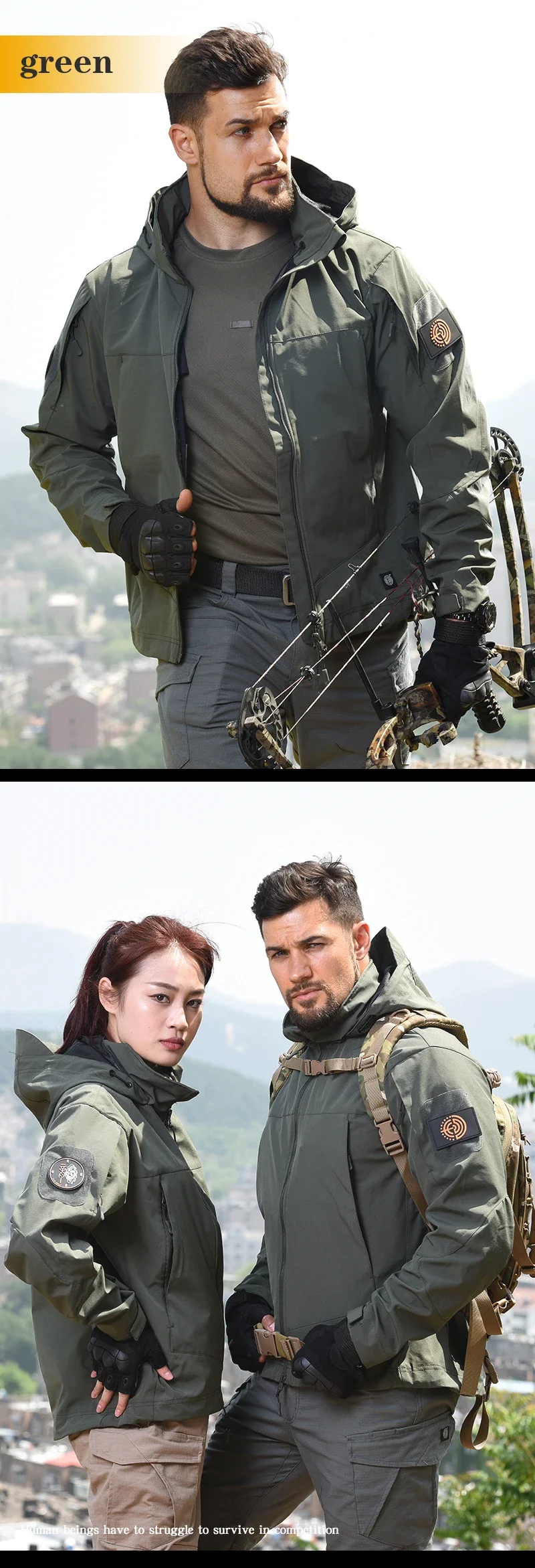 HAN WILD Cotton Winter Tactical Jackets Combat Fleece Jacket Warmth Softair Coat Men Windbreaker Airsoft Hiking Camping Clothes Material:100% Polyester Feature: 1. The hat can be folded up and fixed with hook&loop 2. Two way zipper for easy movement 3. Totally 6 large capacity pockets for easy carrying 4. Cuff hook&loop for better wind protection 5. Neat routing and excellent workmanship 6. Waterproof fabric, no fear of rain 7. Fleece inner layer keep you warm Attention: height and weight