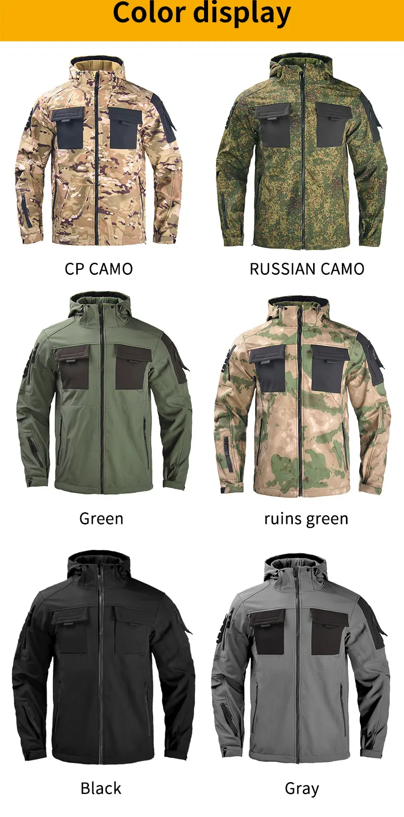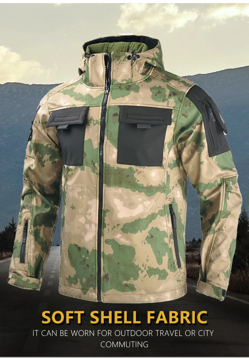 HAN WILD Softshell Jacekt chaqueta con capucha de invierno para hombre calidez de piel de tiburón impermeable abrigo táctico de EE. UU. bolsillos grandes abrigo de caza para senderismoAtención: