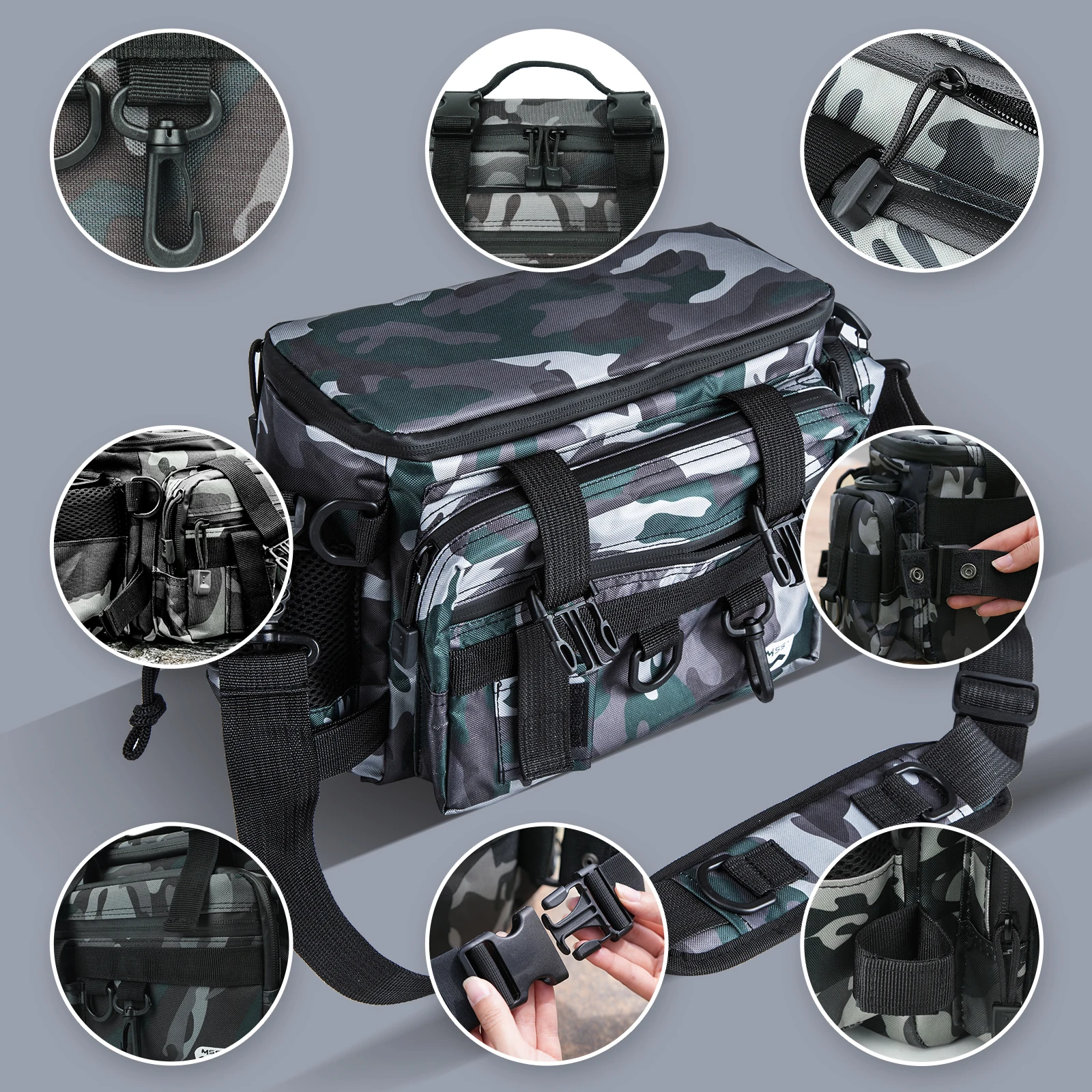 • Diseño de múltiples capas y múltiples compartimentos: esta mochila proporciona un amplio espacio para guardar sus aparejos de pesca, señuelos y otros elementos esenciales, lo que la convierte en una opción ideal para viajes de pesca largos.