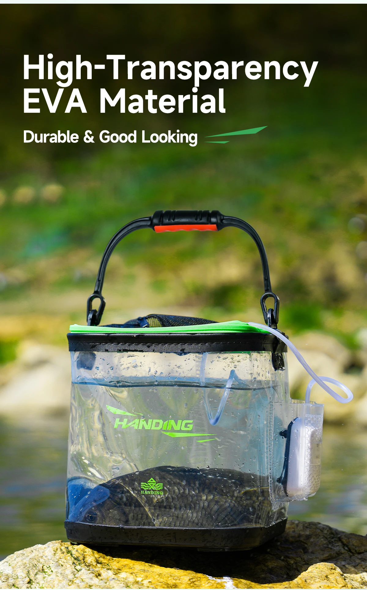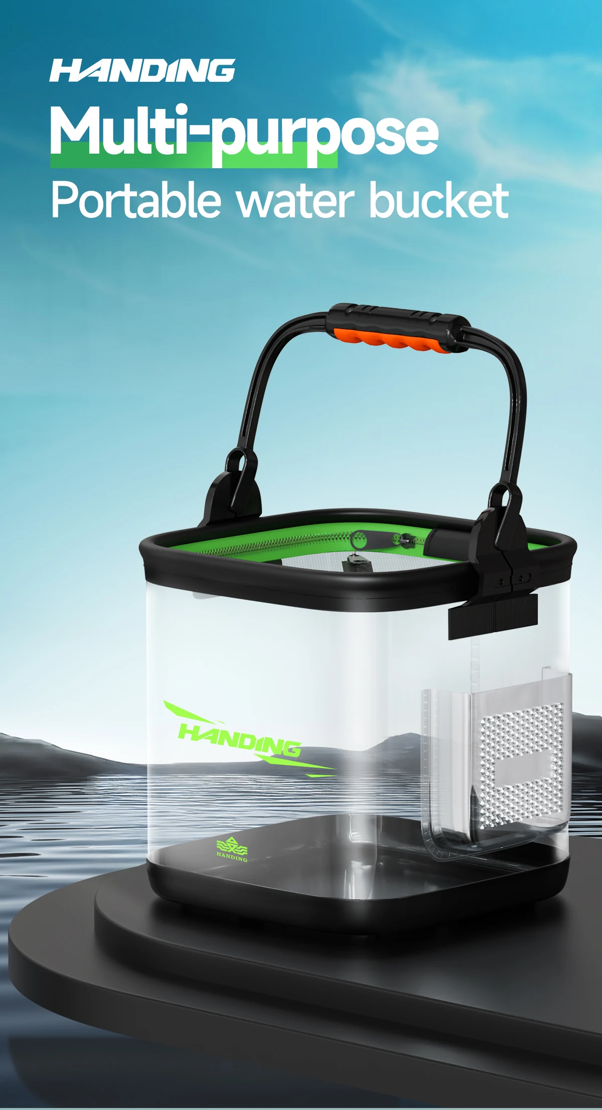 HANDING-cubo portátil transparente para pesca, cubo de agua plegable, contenedor multifuncional, cubo de protección para peces