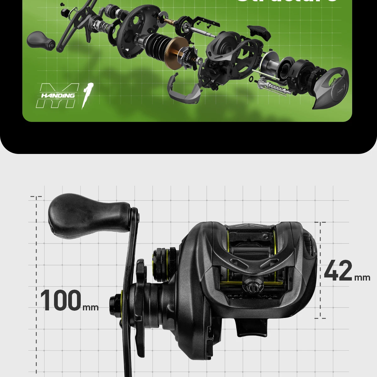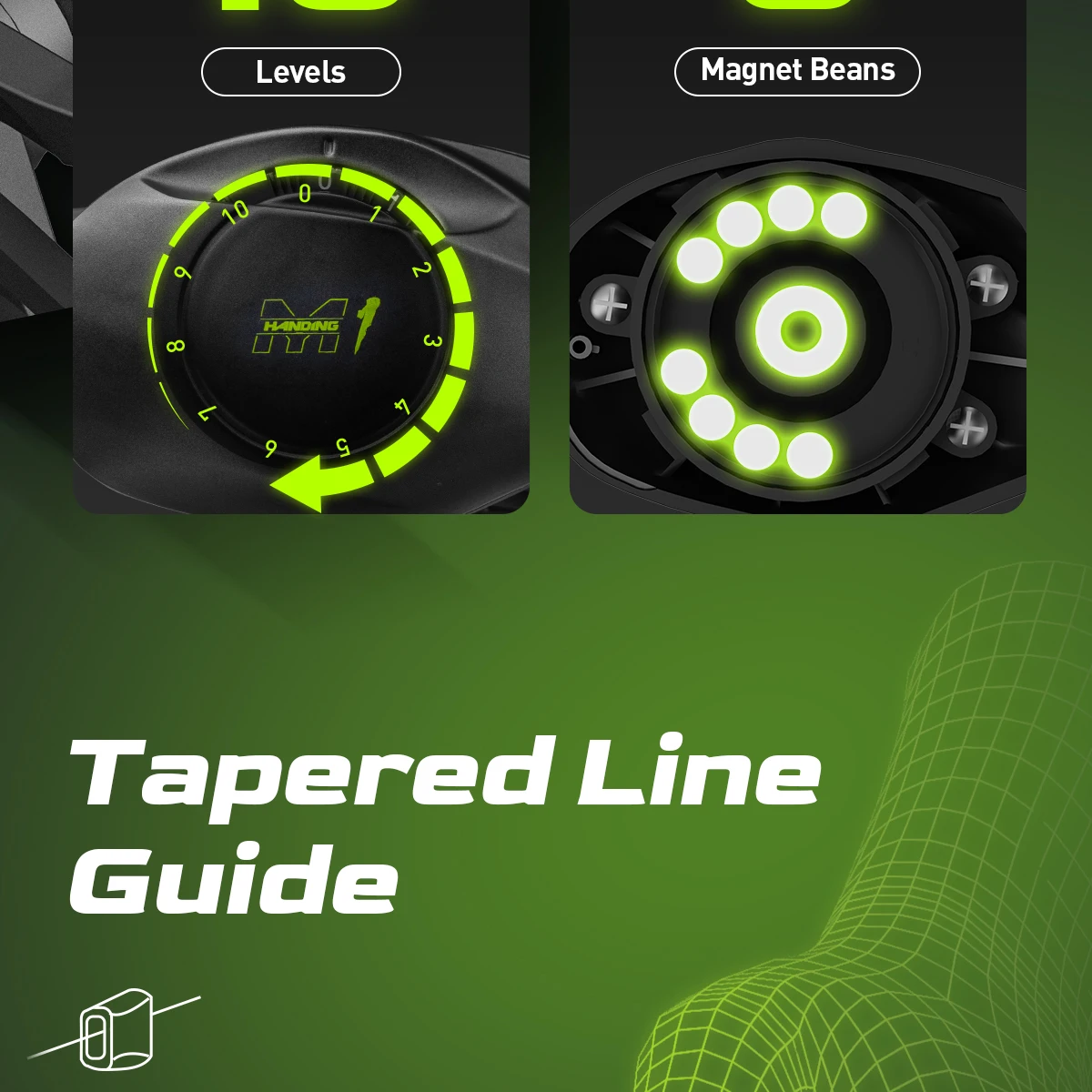 ● El carrete de pesca M1 Baitcasting puede ajustar eficazmente los frenos y la tensión del carrete utilizando un sistema de frenado magnético de 10 niveles con 30 pines y 8 frijoles magnéticos.