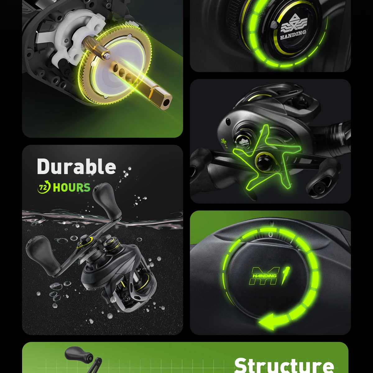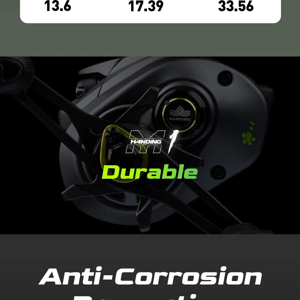 ● El engranaje y el eje de latón del carrete de pesca proporcionan durabilidad, resistencia a la corrosión y un rendimiento fiable bajo altas cargas.