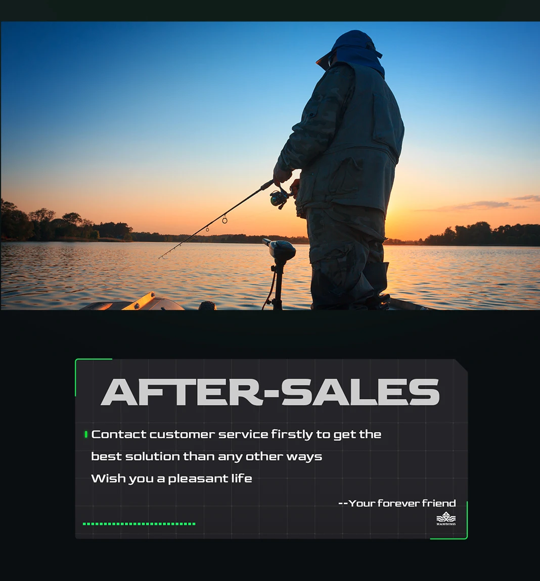 Después de 10 años de trabajar en una fábrica de aparejos de pesca, el fundador estableció la marca HANDING en 2012, centrándose en proporcionar alto rendimiento y alta calidad, y productos de aparejos de pesca rentables para servir a todos los pescadores de todo el mundo.