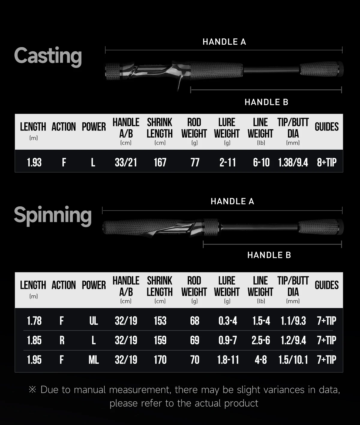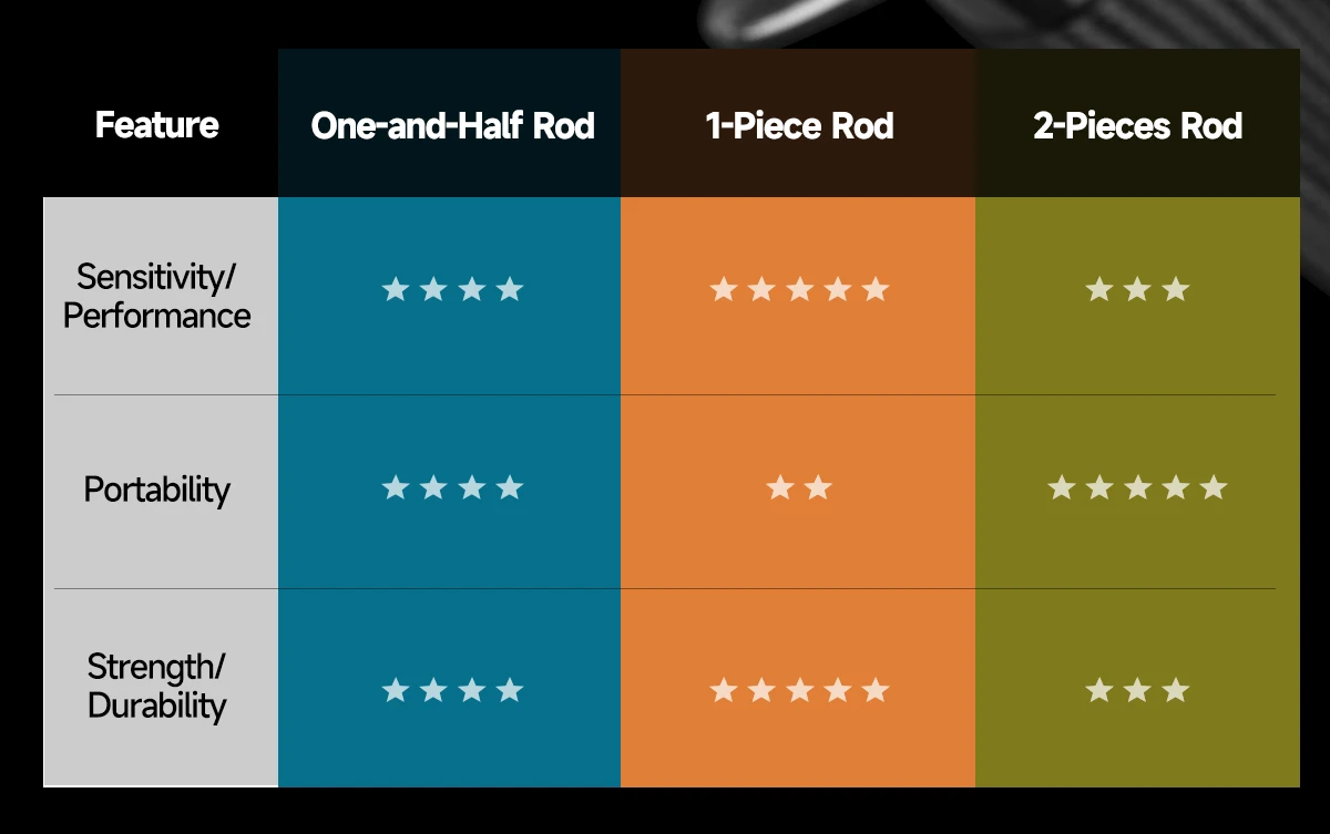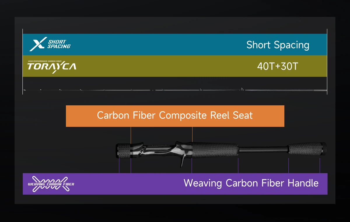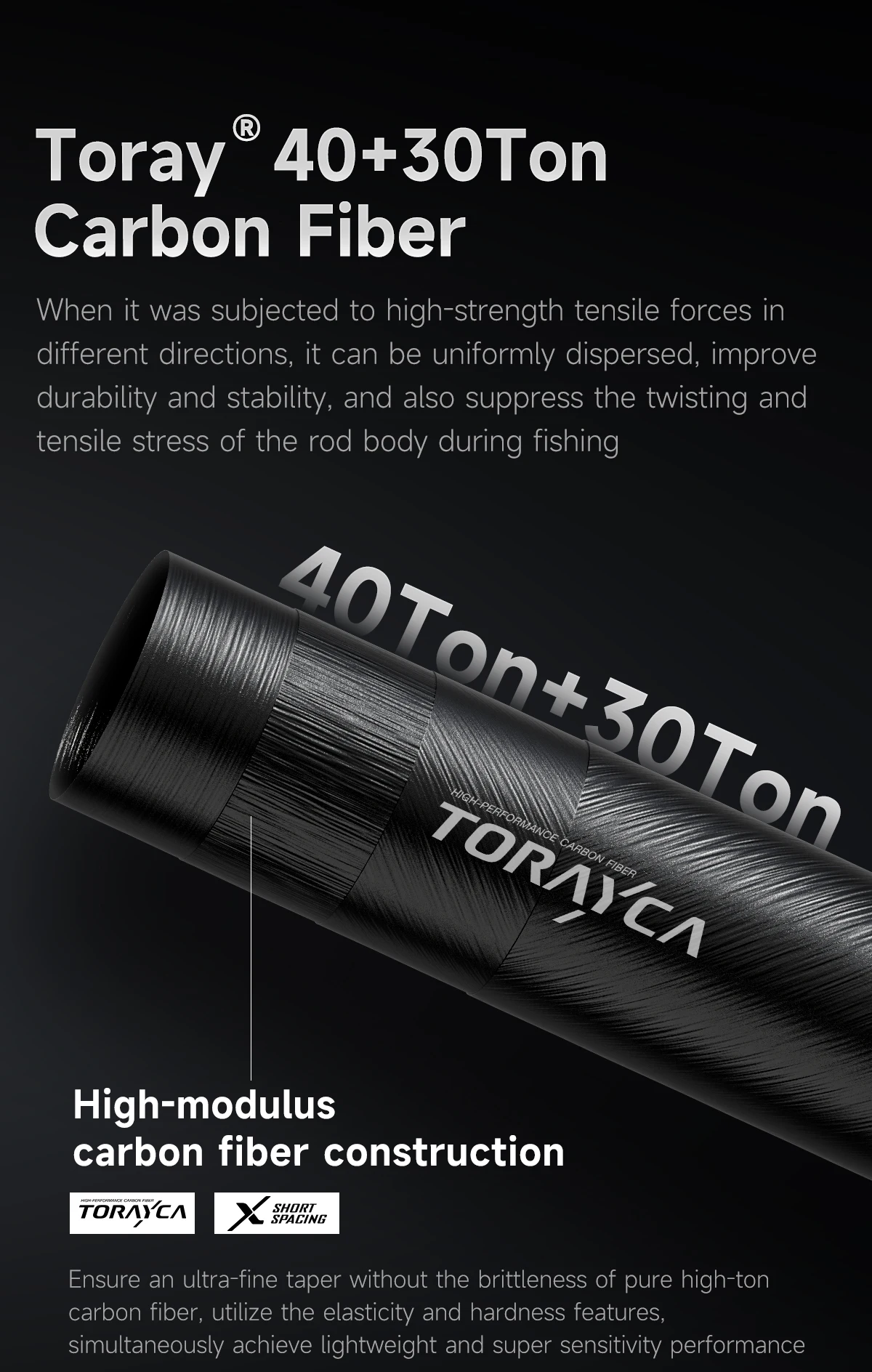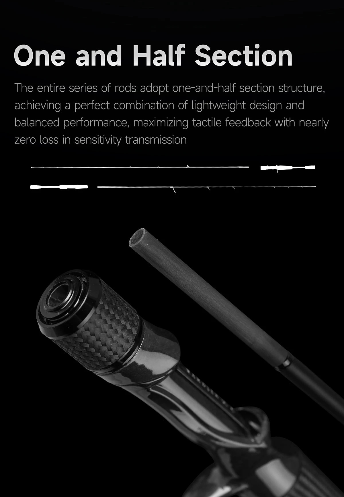 Toda la serie de varillas adopta una estructura de una y media sección, logrando una combinación perfecta de diseño liviano y rendimiento equilibrado, maximizando la retroalimentación táctil con casi nula pérdida en la transmisión de sensibilidad.