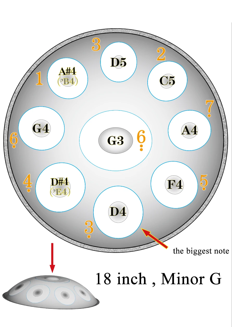 Handpan 18 pulgadas menor G 9 notas 440HZ Pantam acero mano Pan tambor Yoga meditación instrumentos musicales para principiantes