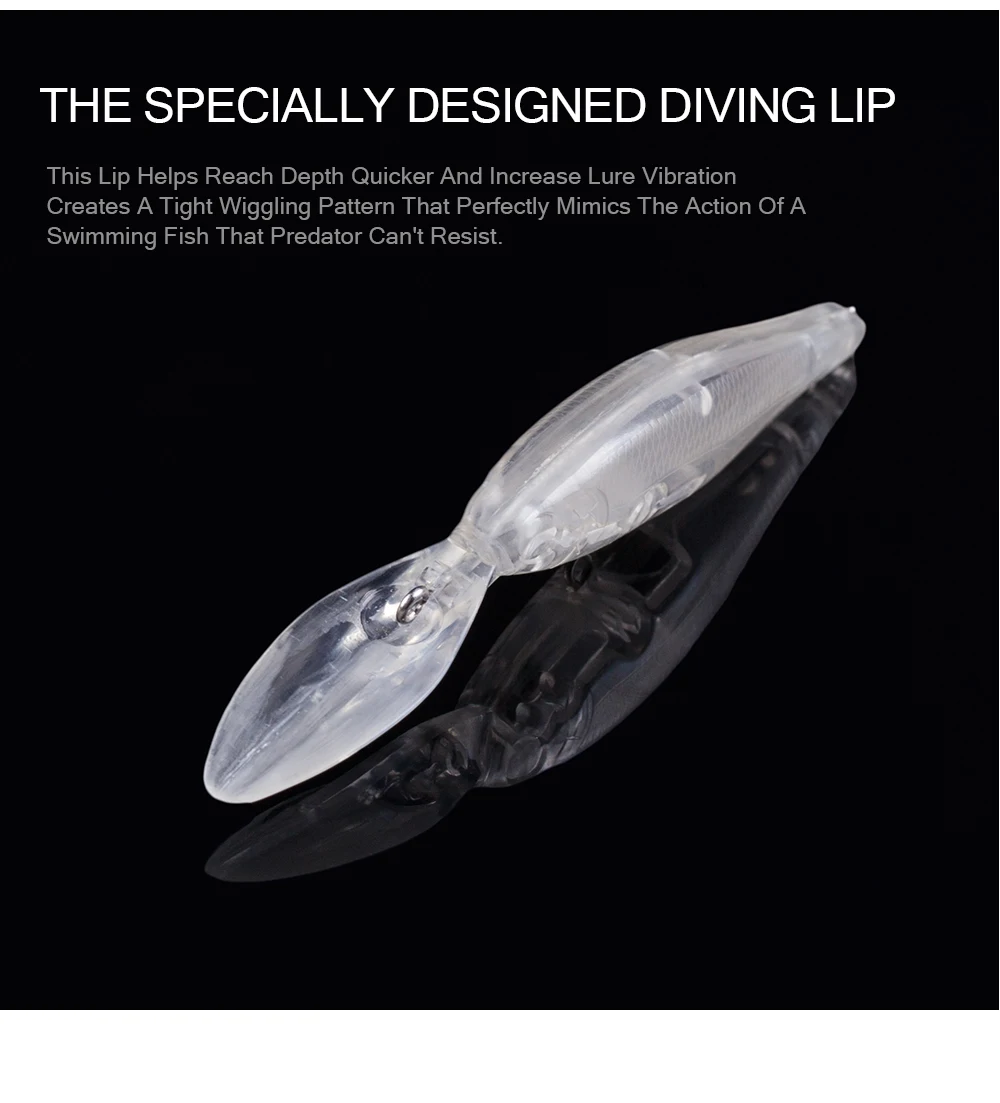 La acción de natación perfecta es mortalmente atractiva para los peces. Este tipo de señuelo de pesca muestra una acción de natación animada en el agua. Con una bola de acero en el interior, los cebos pueden permanecer estables durante el lanzamiento y pueden aumentar la distancia de lanzamiento al mismo tiempo.