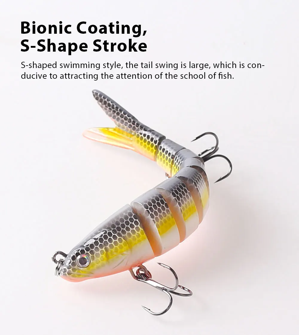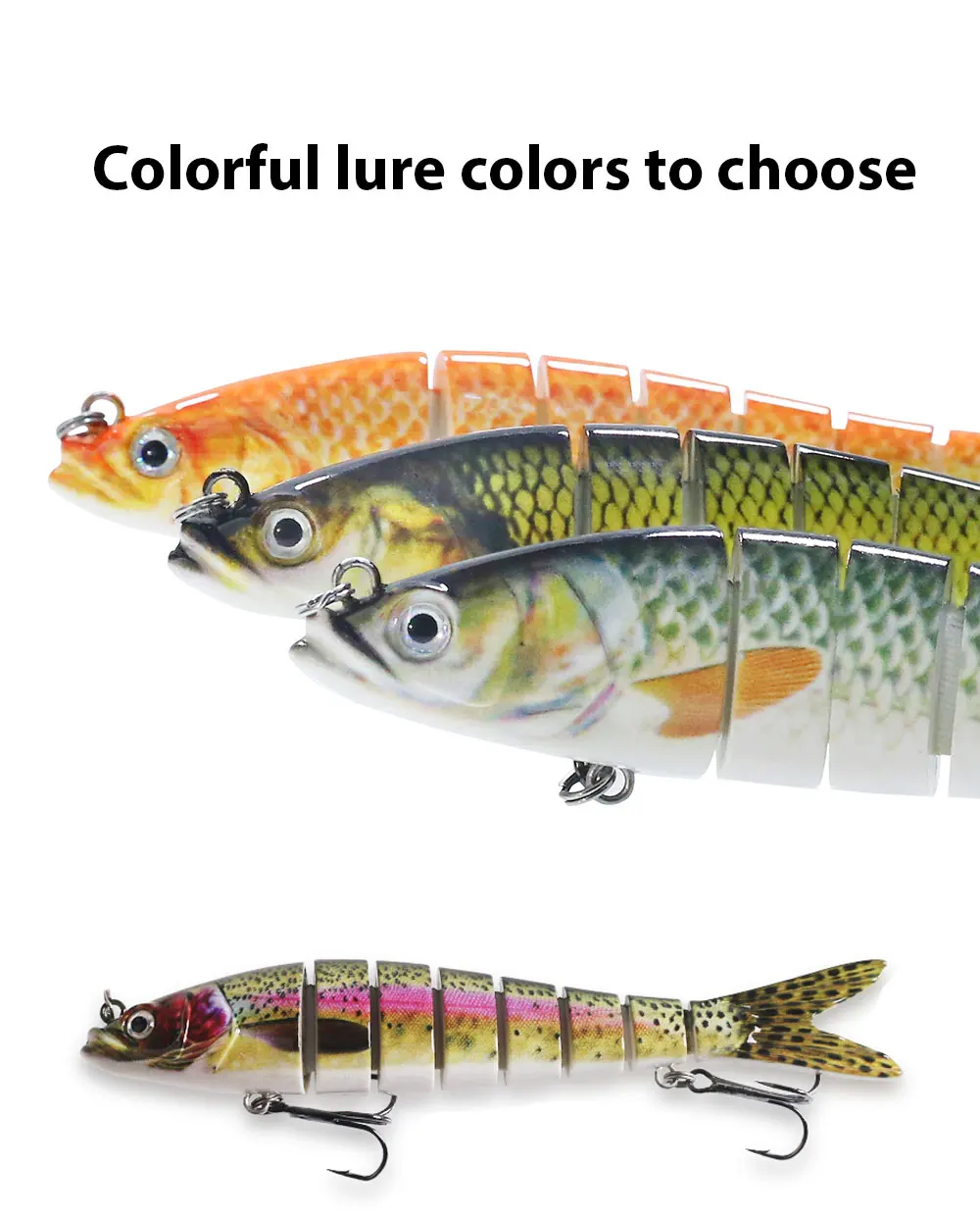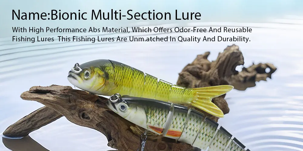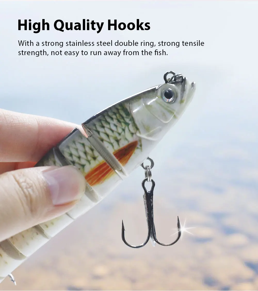 Este cebo duro multiarticulado es uno de los mejores accesorios de su caja de aparejos. Tiene una apariencia realista y puede crear acciones de natación realistas en el agua para provocar que el depredador muerda. Si eres un amante de la pesca, toma este señuelo de pesca y aumentará tus capturas y te brindará más diversión.