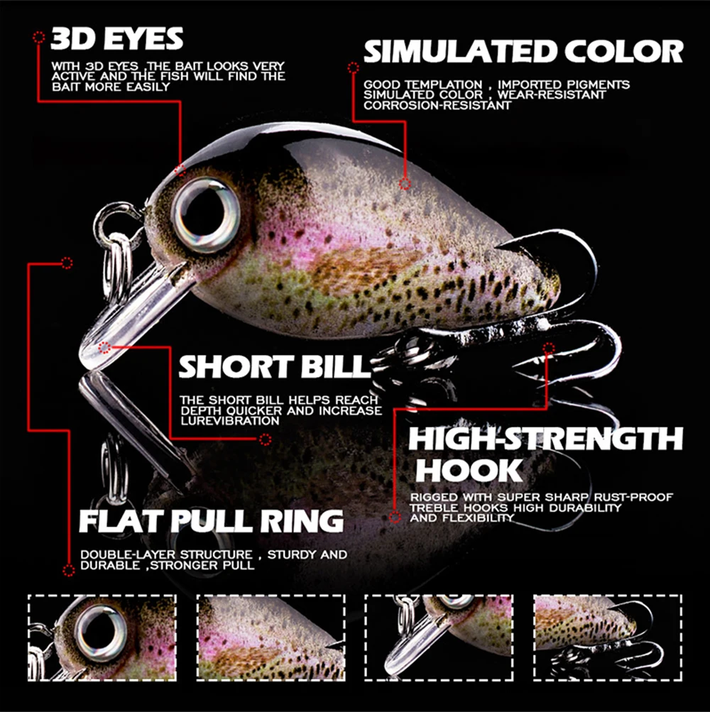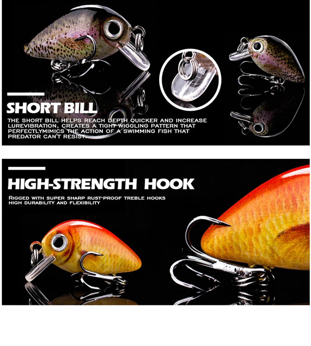 ◆ Rattle and hook - with pretty sharp sticky hook but it's pretty light .With steel ball inside,Control barycenter easily, crank baits more easily to be sensed.