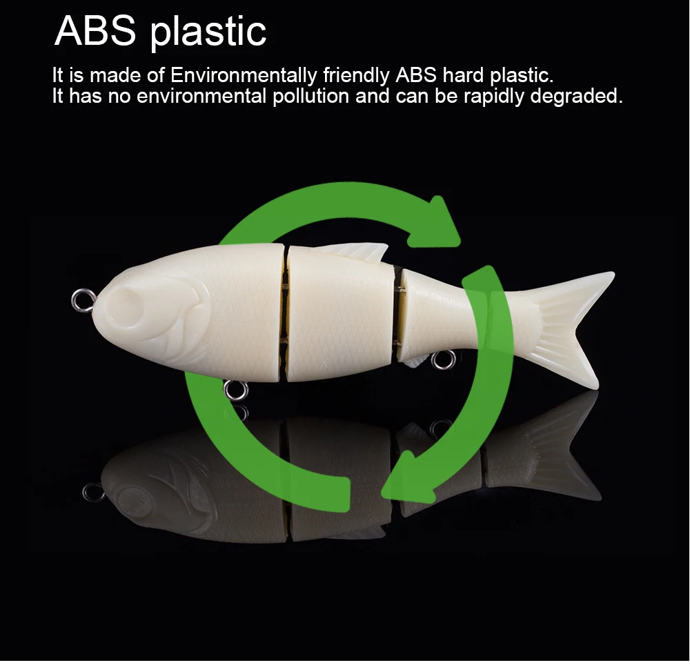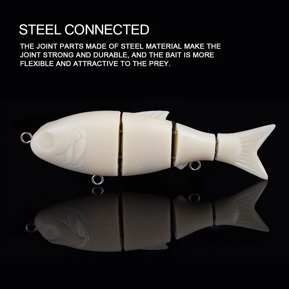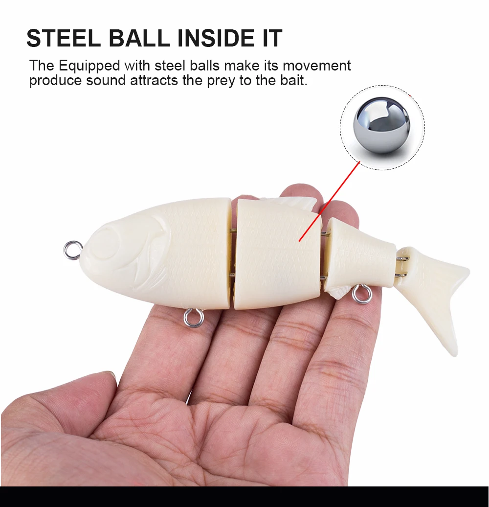 La acción de natación perfecta es mortalmente atractiva para los peces. Este Tipo de señuelo de pesca muestra una acción de natación animada en el agua, con bola de acero en el interior, Los cebos pueden mantenerse estables durante el lanzamiento y pueden aumentar la distancia de lanzamiento al mismo tiempo.