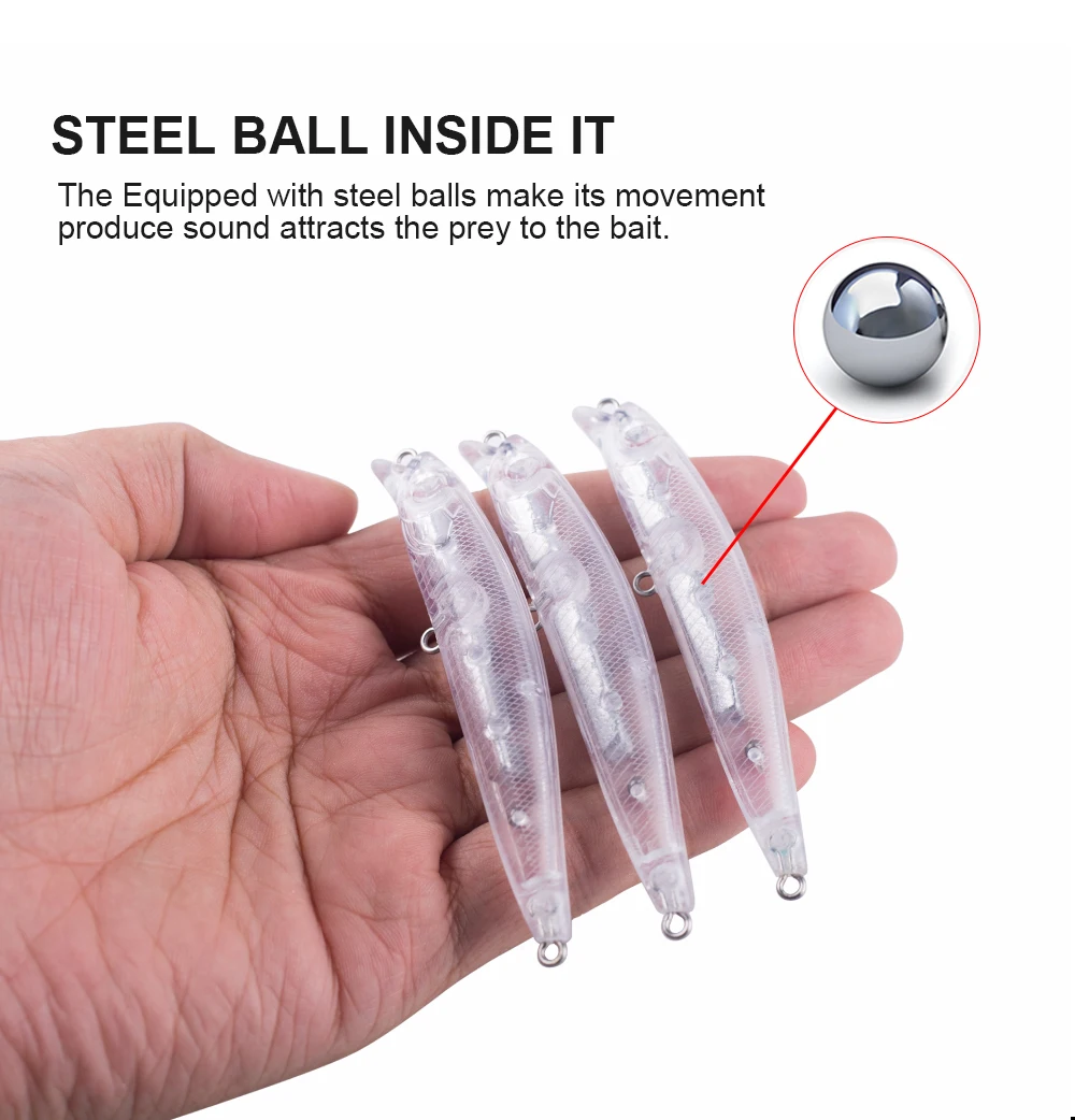 La acción de natación perfecta es mortalmente atractiva para los peces. Este Tipo de señuelo de pesca muestra una acción de natación animada en el agua, con bola de acero en el interior, Los cebos pueden mantenerse estables durante el lanzamiento y pueden aumentar la distancia de lanzamiento al mismo tiempo.