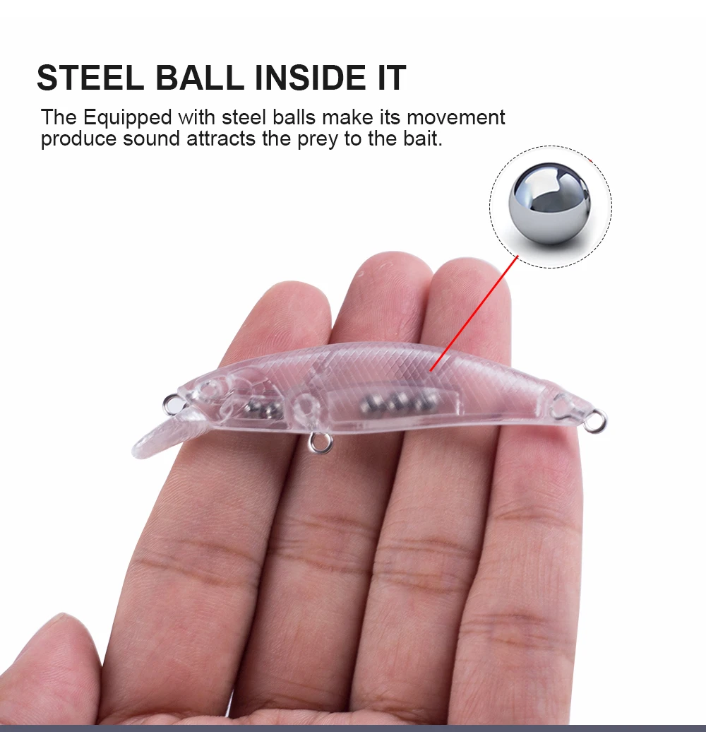 La acción de natación perfecta es mortalmente atractiva para los peces. Este Tipo de señuelo de pesca muestra una acción de natación animada en el agua, con bola de acero en el interior, Los cebos pueden mantenerse estables durante el lanzamiento y pueden aumentar la distancia de lanzamiento al mismo tiempo.