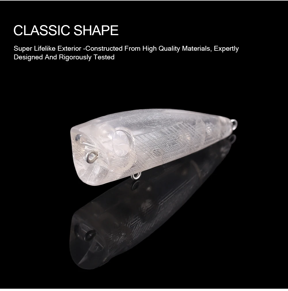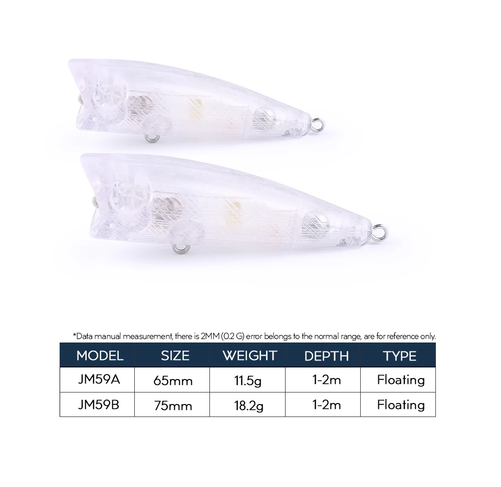 Hanlin-cebos de plástico duro de cuerpo transparente, aparejos de pesca de lubina, Popper grande, Topwater, sin pintar, 65mm/75mm, 11,5g/18,2g, 10/20 piezas