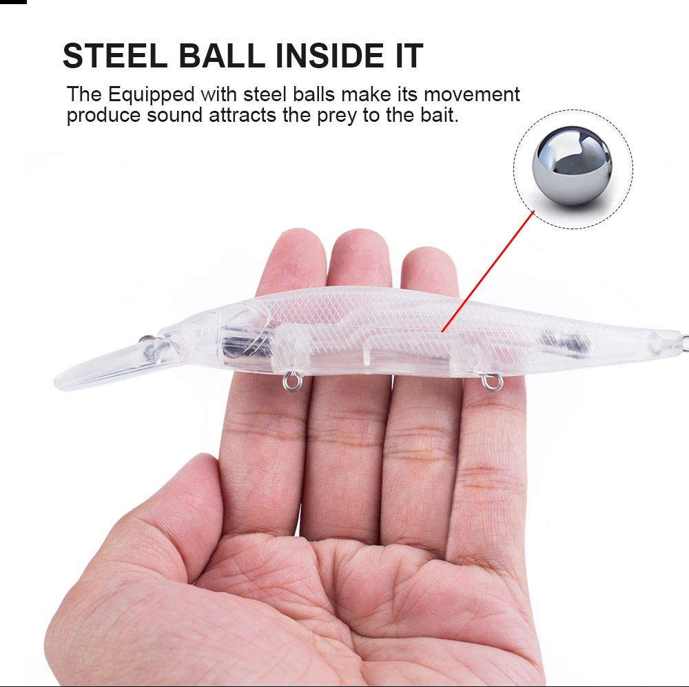 La acción de natación perfecta es mortalmente atractiva para los peces. Este Tipo de señuelo de pesca muestra una acción de natación animada en el agua, con bola de acero en el interior, Los cebos pueden mantenerse estables durante el lanzamiento y pueden aumentar la distancia de lanzamiento al mismo tiempo.