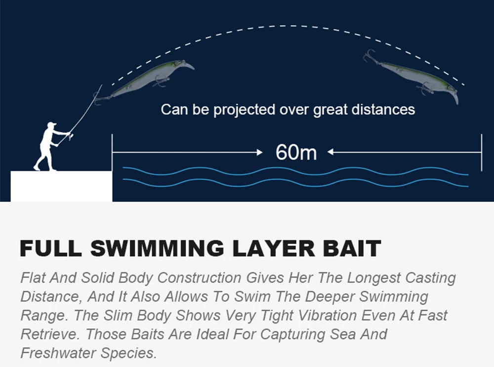 El cebo duro CC21 es uno de los mejores accesorios en tu caja de aparejos. Tiene apariencia y color realistas y puede crear acciones de natación realistas en el agua para provocar que el depredador muerda. Si usted es un entusiasta de la pesca, tome este señuelo de pesca y aumentará sus capturas y le traerá mucha diversión.