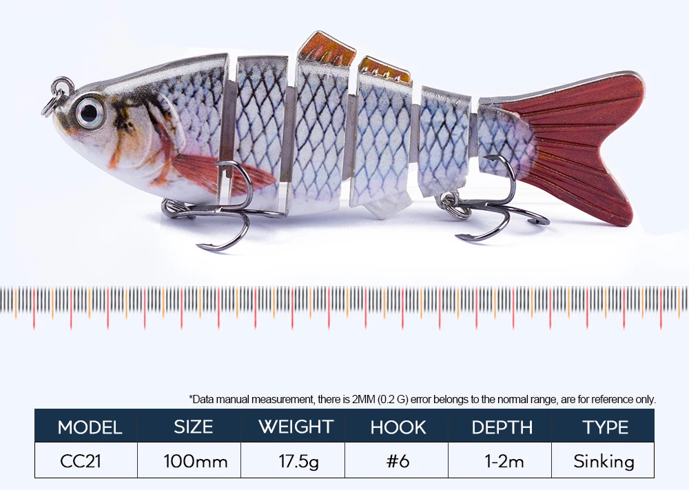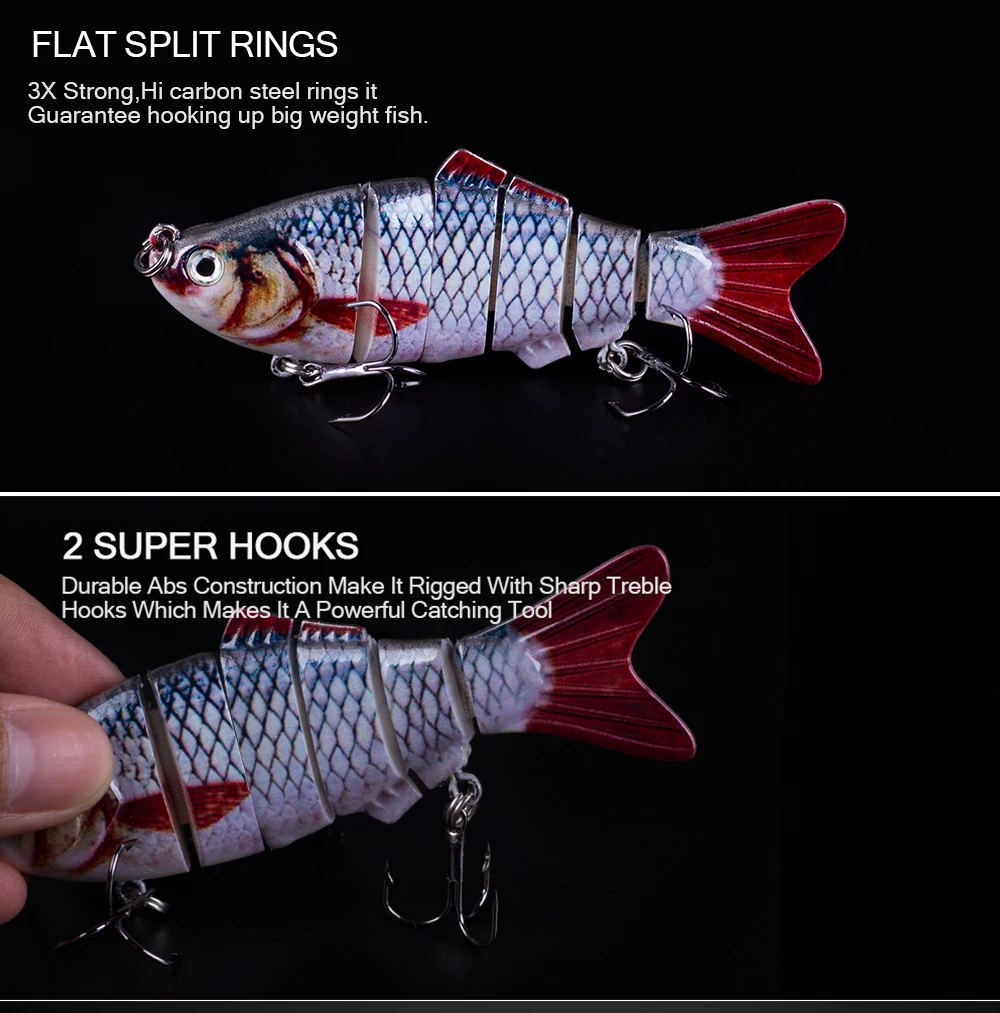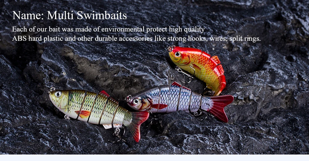 Este cebo duro de Múltiples articulaciones es uno de los mejores accesorios en su caja de aparejos. Tiene una apariencia realista y puede crear acciones de natación realistas en el agua para provocar que el depredador muerda. Si eres un amante de la pesca, coge este señuelo de pesca y aumentará tus capturas y te traerá más diversión.
