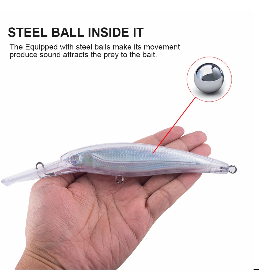 La acción de natación perfecta es mortalmente atractiva para los peces. Este Tipo de señuelo de pesca muestra una acción de natación animada en el agua, con bola de acero en el interior, Los cebos pueden mantenerse estables durante el lanzamiento y pueden aumentar la distancia de lanzamiento al mismo tiempo.