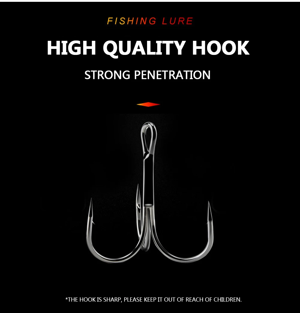3) Estructura general: la estructura interna utiliza la bola de acero para equilibrar la conducción. Cuando Tomas la línea, la bola en el cuerpo se transmite a otras partes y produce sonido, lo que puede llevar al pez a perseguir. La forma está hecha de acero al carbono con 2 anzuelos triples súper afilados para garantizar que los peces no se escapen. Esos Jerkbaits son ideales para capturar especies marinas y de agua dulce.