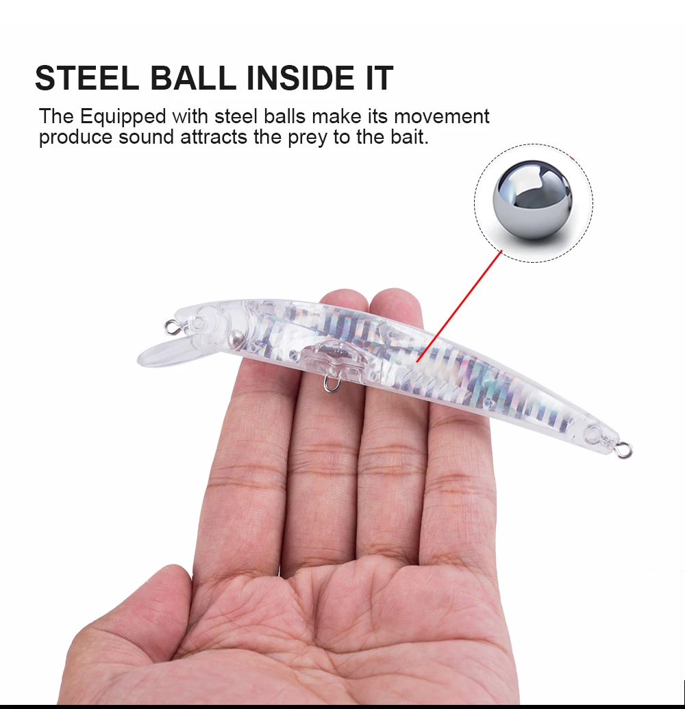 La acción de natación perfecta es mortalmente atractiva para los peces. Este Tipo de señuelo de pesca muestra una acción de natación animada en el agua, con bola de acero en el interior, Los cebos pueden mantenerse estables durante el lanzamiento y pueden aumentar la distancia de lanzamiento al mismo tiempo.