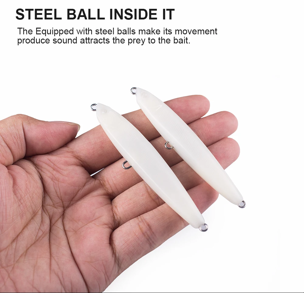 La acción de natación perfecta es mortalmente atractiva para los peces. Este Tipo de señuelo de pesca muestra una acción de natación animada en el agua, con bola de acero en el interior, Los cebos pueden mantenerse estables durante el lanzamiento y pueden aumentar la distancia de lanzamiento al mismo tiempo.