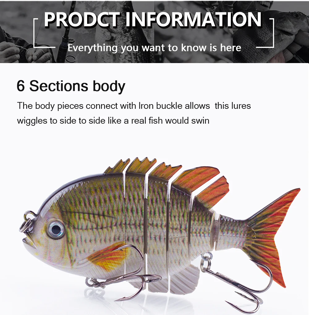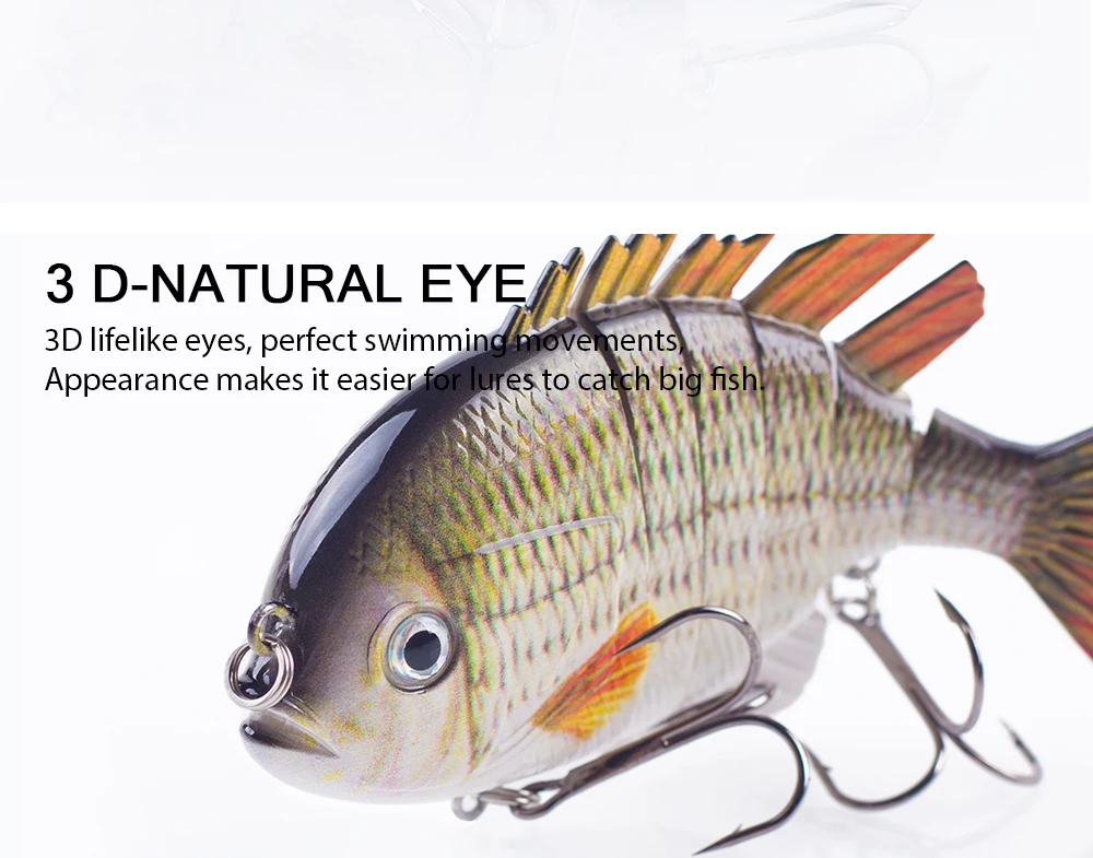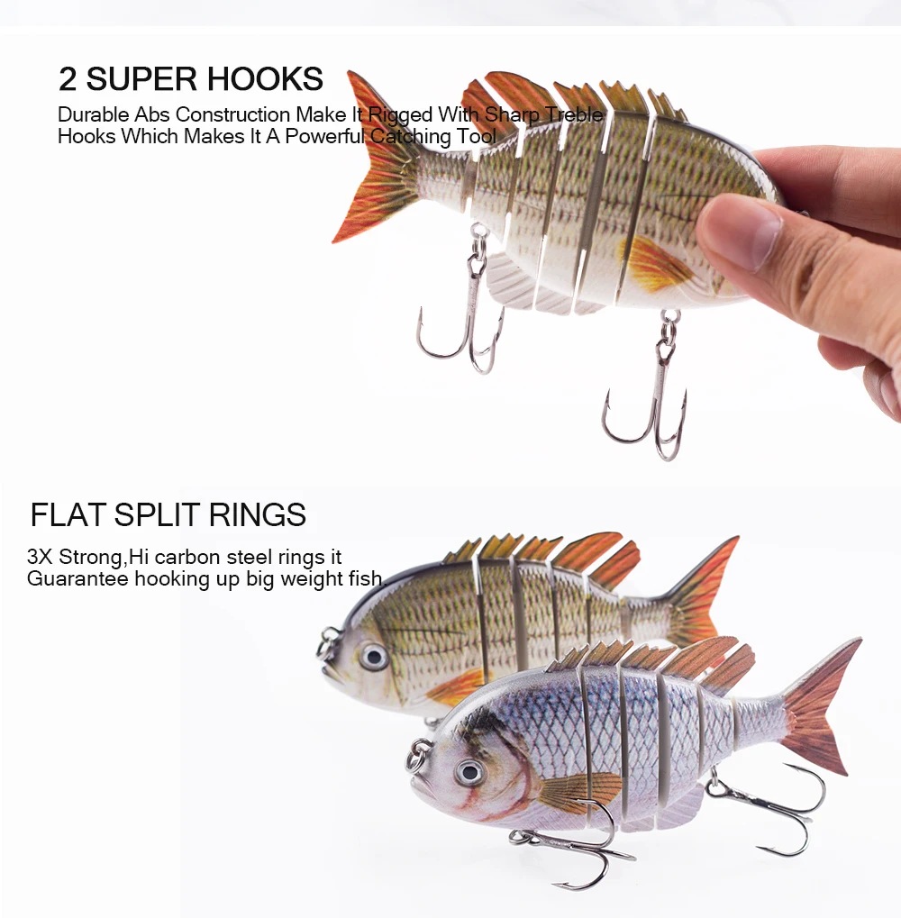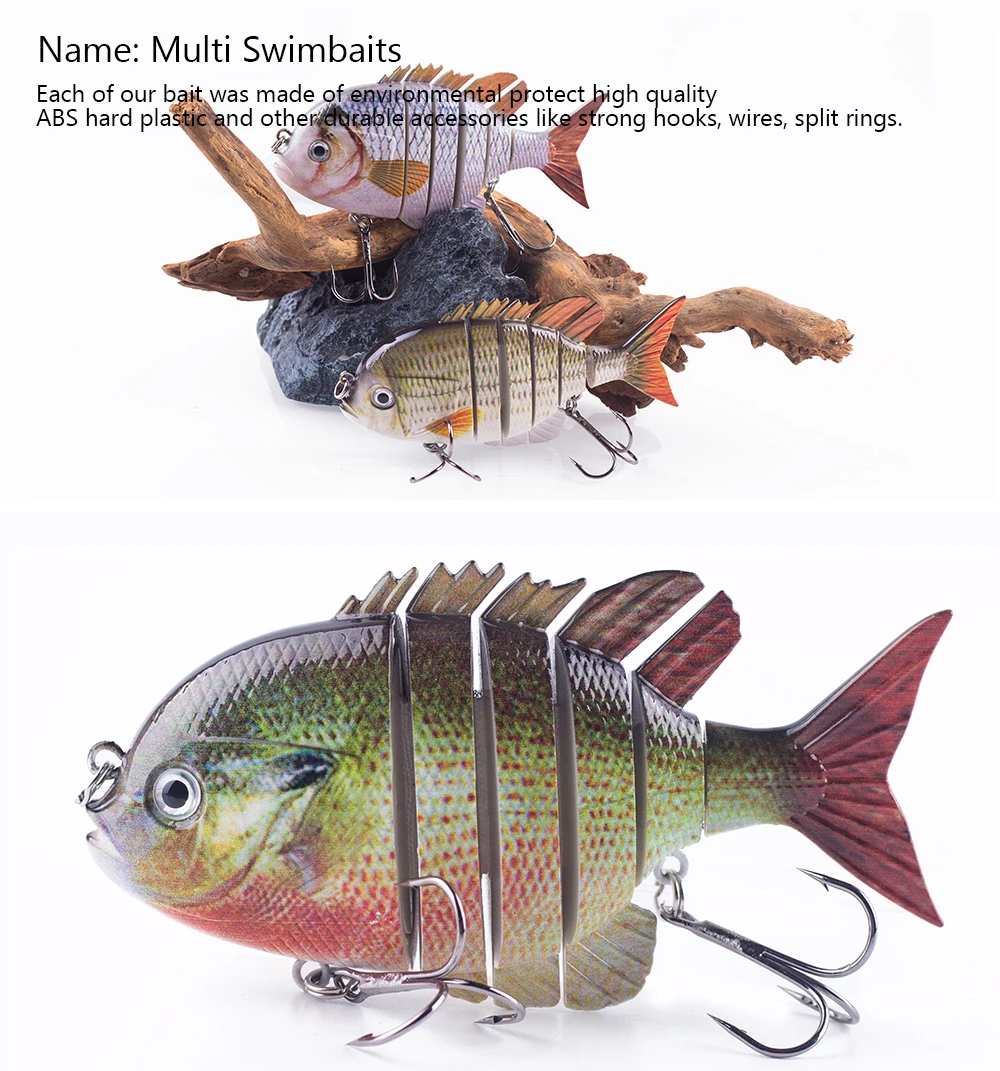 Este cebo duro multiarticulado es uno de los mejores accesorios en tu caja de aparejos. Tiene una apariencia realista y puede crear acciones de natación realistas en el agua para provocar que el depredador muerda. Si eres un amante de la pesca, coge este señuelo de pesca y aumentará tus capturas y te traerá más diversión.