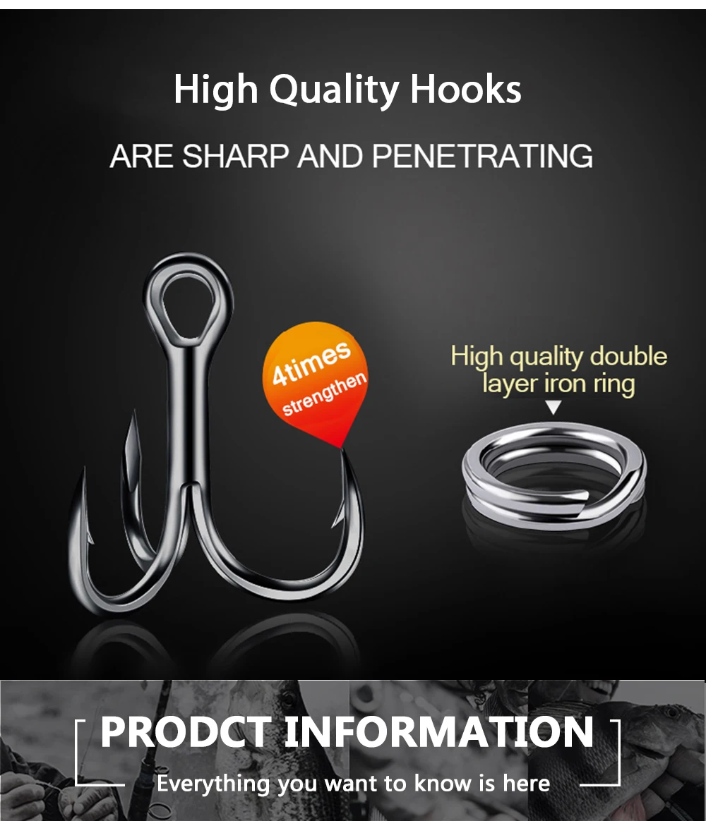 Ganchos: 2 ganchos triples de níquel negro de alto carbono n. ° 2 de 2.