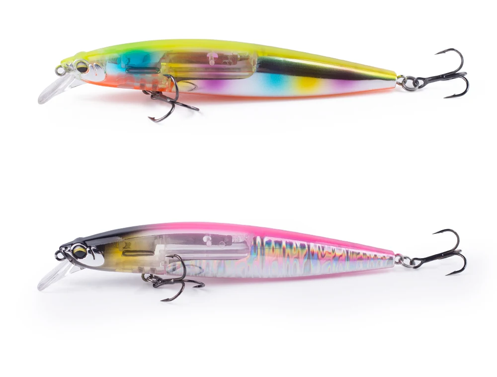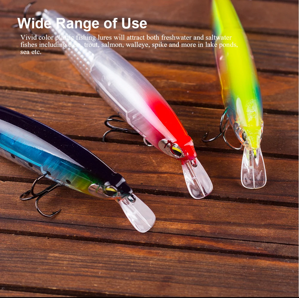 La acción de natación perfecta es mortalmente atractiva para los peces. Este Tipo de señuelo de pesca muestra una acción de natación animada en el agua, con bola de acero en el interior, Los cebos pueden mantenerse estables durante el lanzamiento y pueden aumentar la distancia de lanzamiento al mismo tiempo.