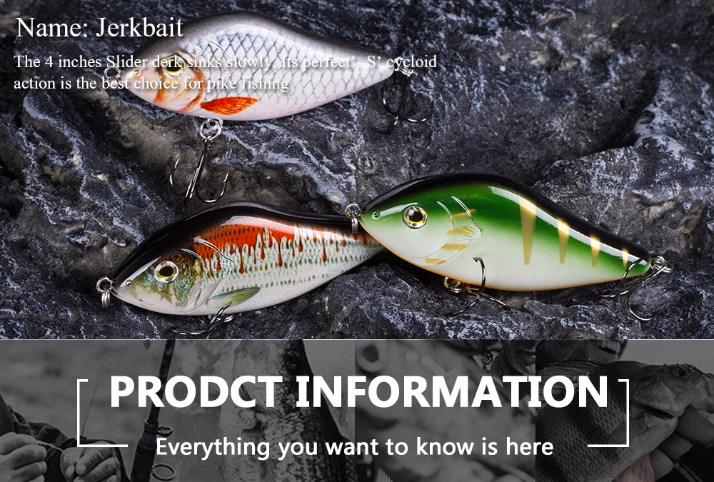 La acción de natación perfecta es mortalmente atractiva para los peces. Este Tipo de señuelo de pesca muestra una acción de natación animada en el agua, con bola de acero en el interior, Los cebos pueden mantenerse estables durante el lanzamiento y pueden aumentar la distancia de lanzamiento al mismo tiempo.