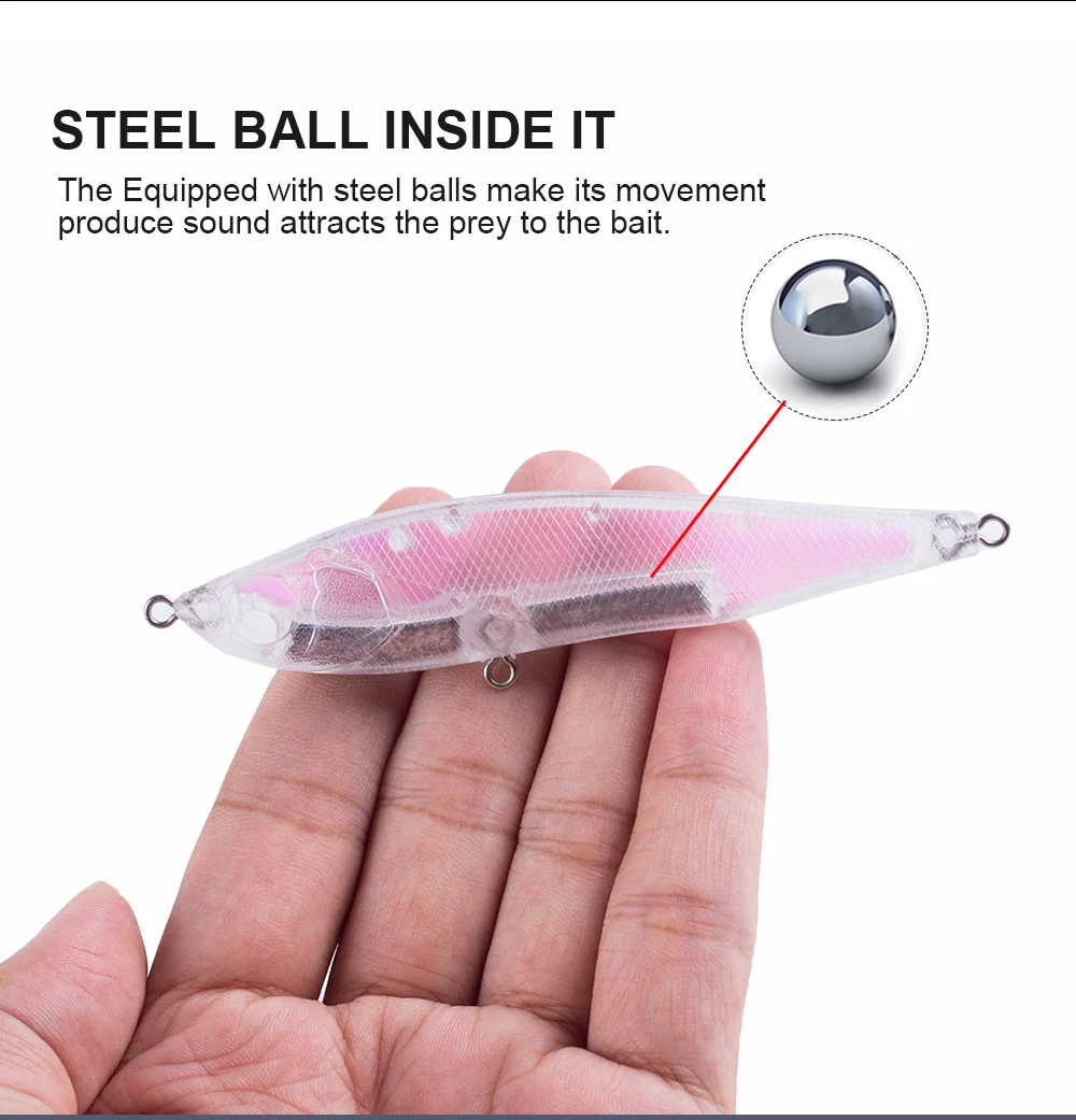 La acción de natación perfecta es mortalmente atractiva para los peces. Este Tipo de señuelo de pesca muestra una acción de natación animada en el agua, con bola de acero en el interior, Los cebos pueden mantenerse estables durante el lanzamiento y pueden aumentar la distancia de lanzamiento al mismo tiempo.