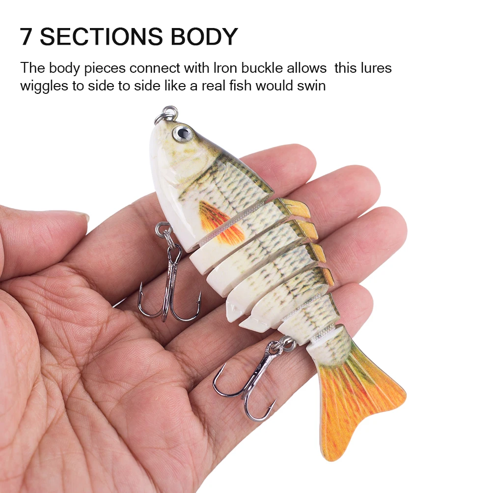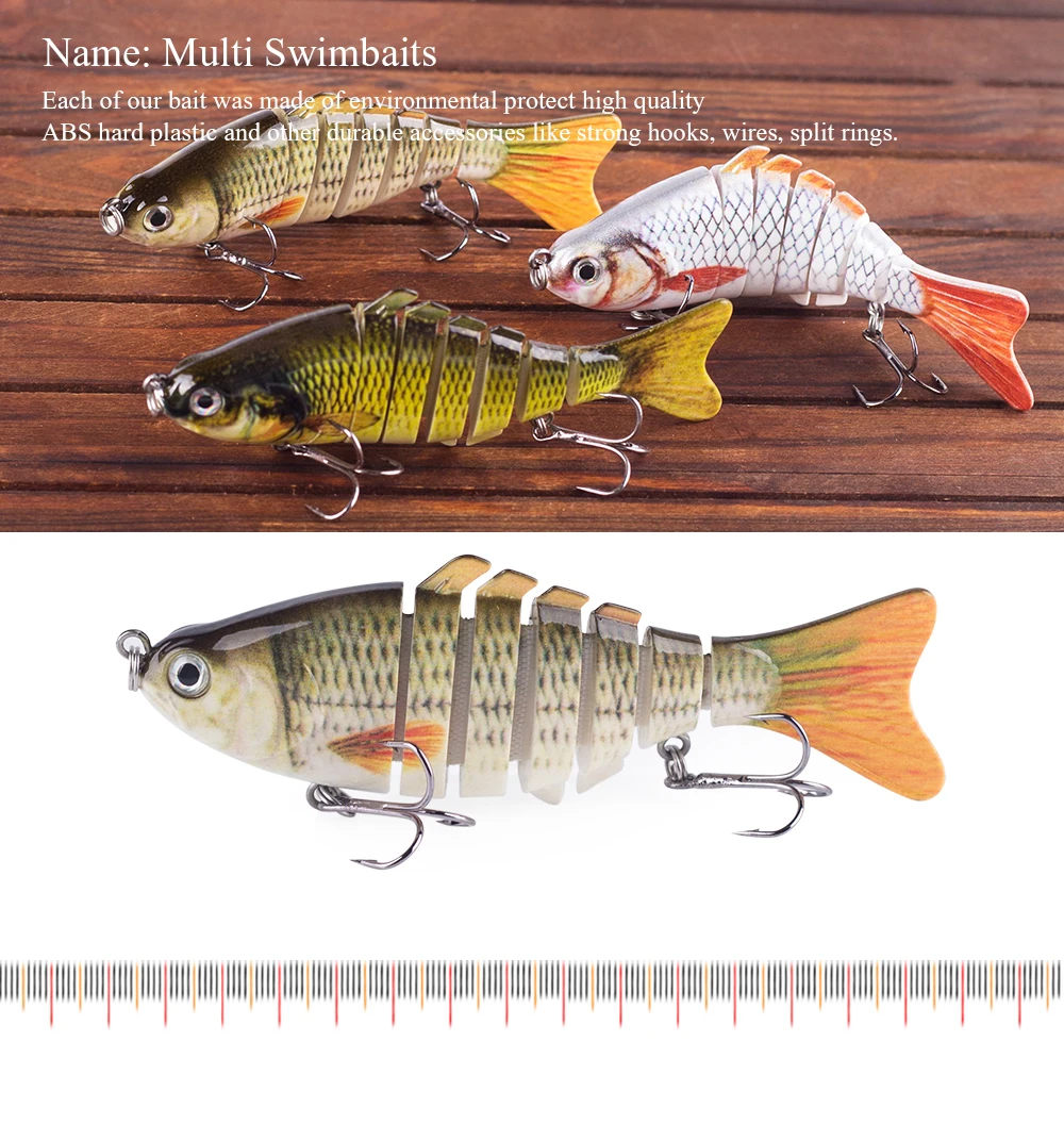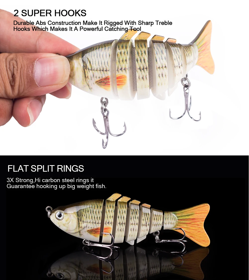 Este cebo duro de Múltiples articulaciones es uno de los mejores accesorios en su caja de aparejos. Tiene una apariencia realista y puede crear acciones de natación realistas en el agua para provocar que el depredador muerda. Si eres un amante de la pesca, coge este señuelo de pesca y aumentará tus capturas y te traerá más diversión.