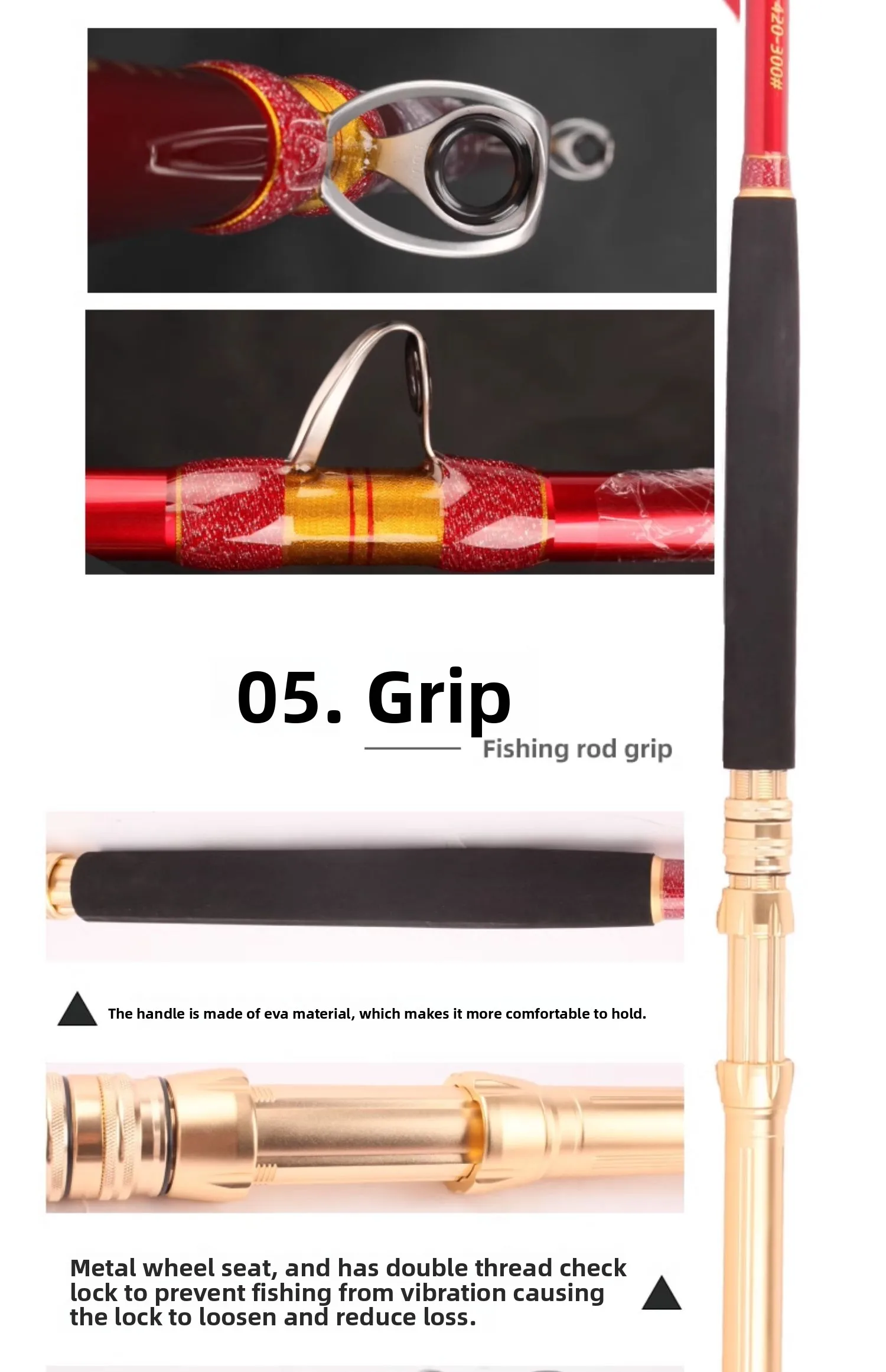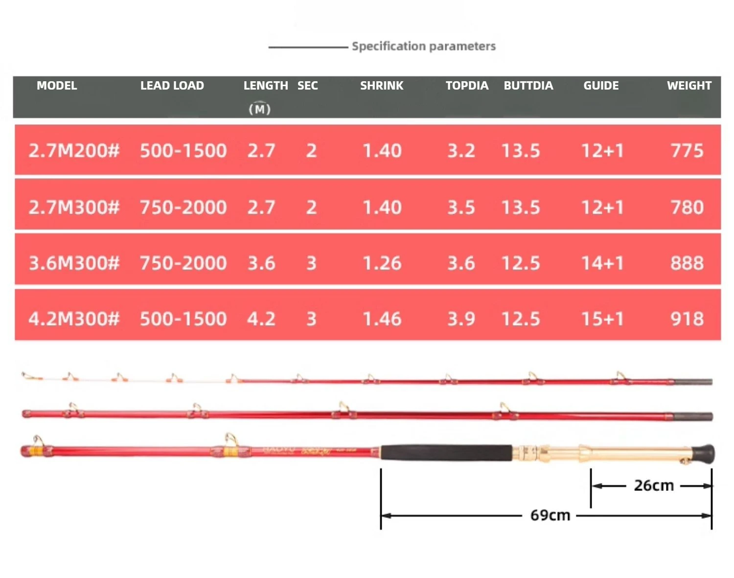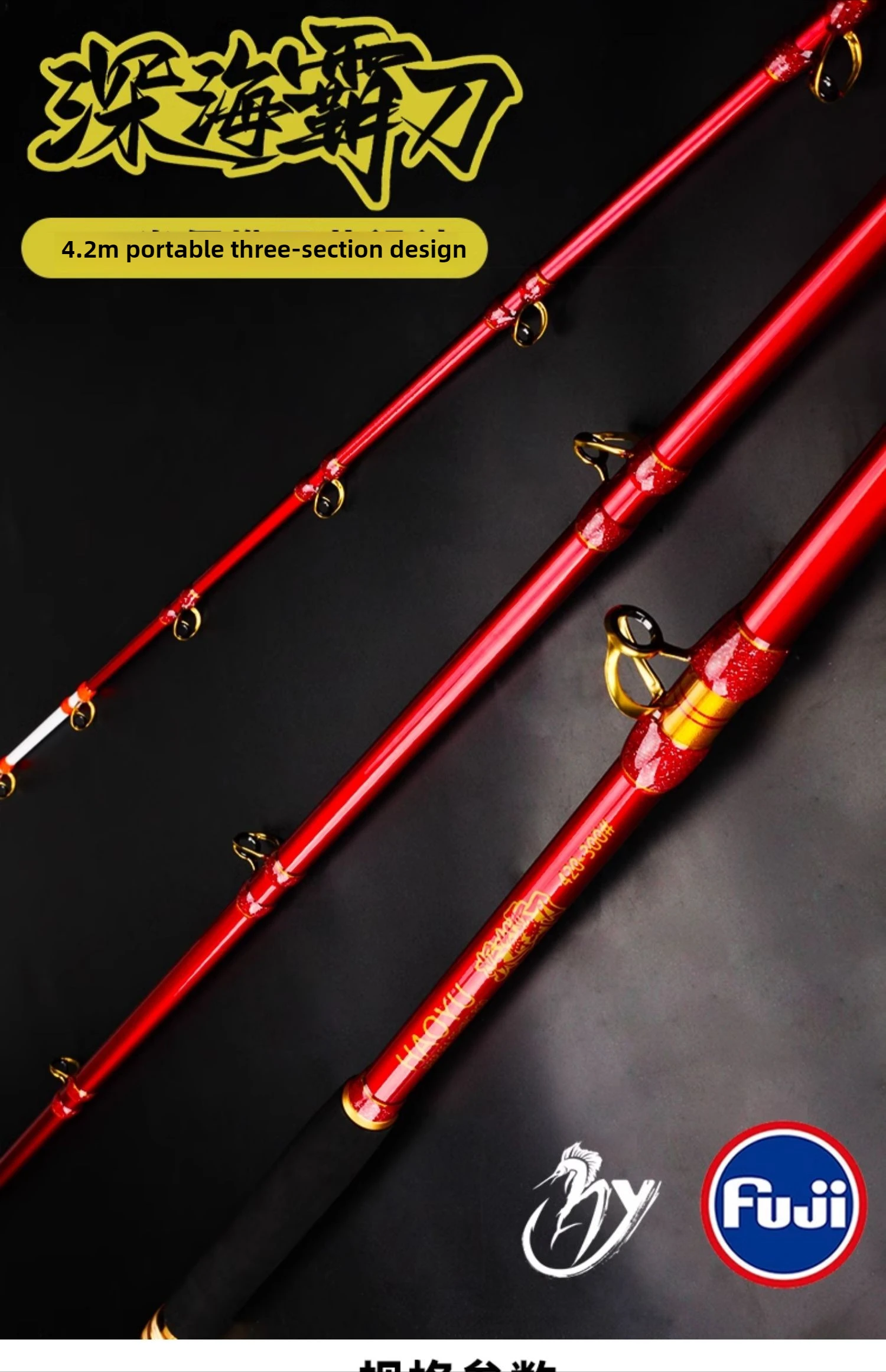 HAOYU Caña de jigging de aguas profundas 4,2 M 300 # Fuji Parts pesca envío barco caña océano aguas profundas caña de pescar