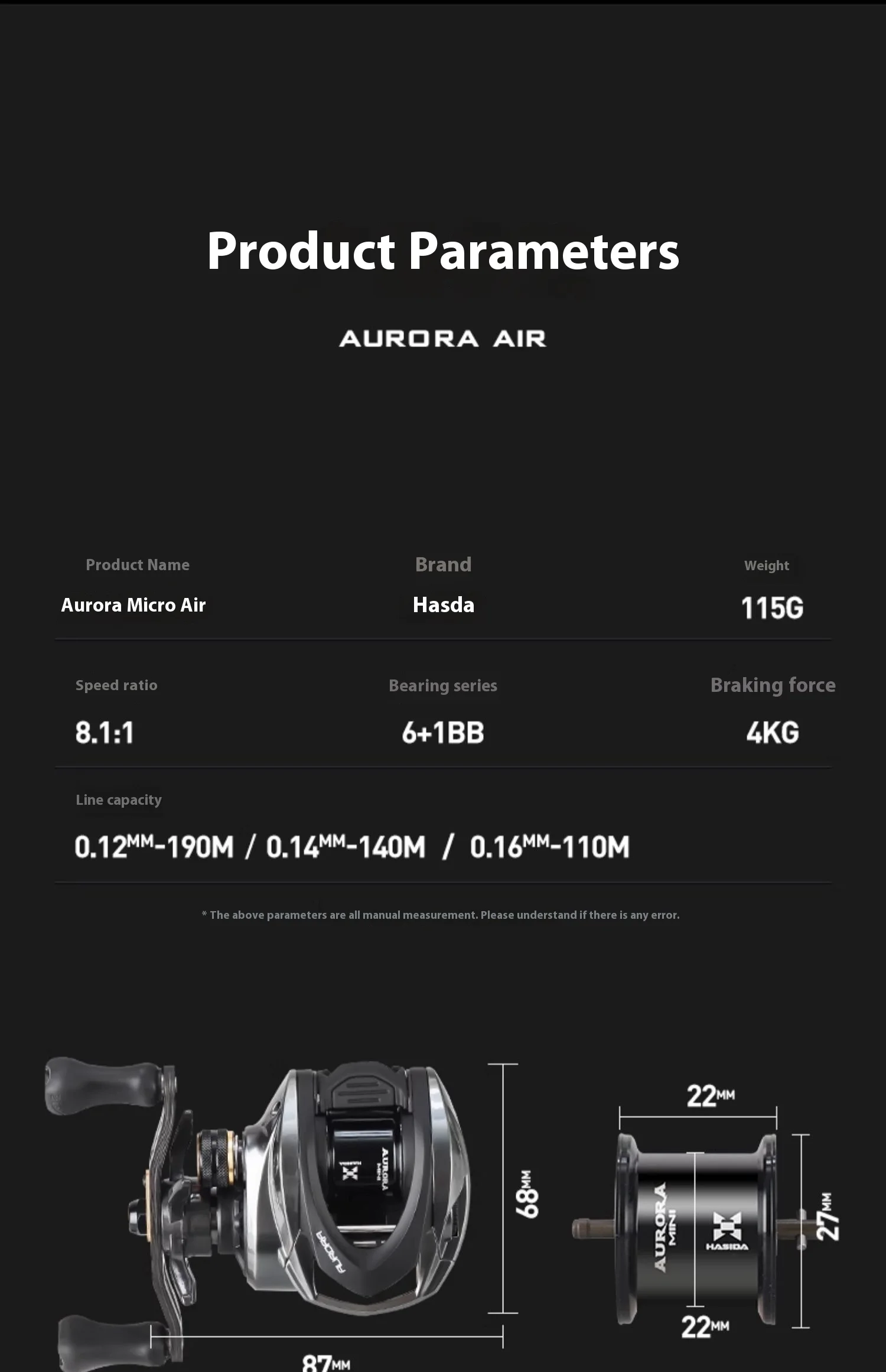 Hasida Aurora Air 8.1: 1 carretes de pesca Baitcast 115g ultraligeros 4KG freno carretes de pesca Baitcast equipo de pesca