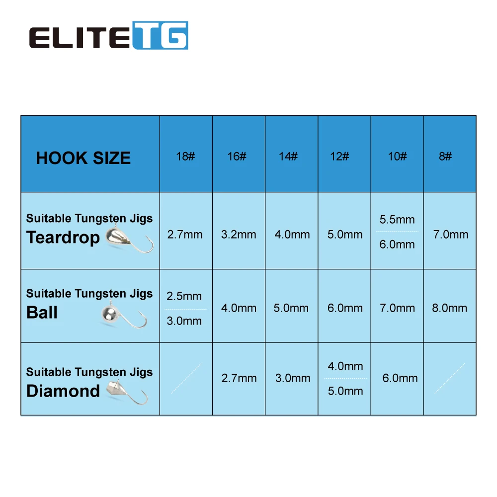 Hayabusa-anzuelo de pesca en hielo Elite TG 100 piezas, #8/10/12/14/16/18, cabezales de plantilla de hielo japoneses, Material de bricolaje, señuelo de perca Walleye Crappie