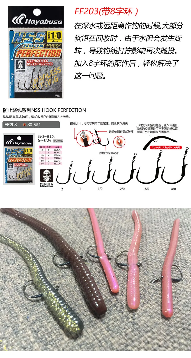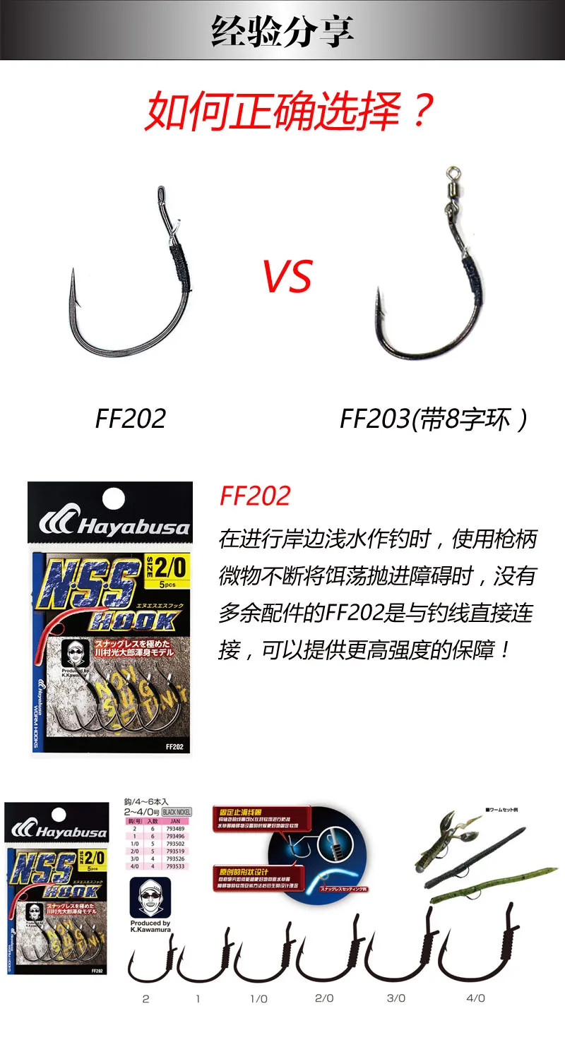 Hayabusa-Grupo de pesca de plomo, anzuelo, gusano de fideos, FF202, 203, Luya Neko, Japón