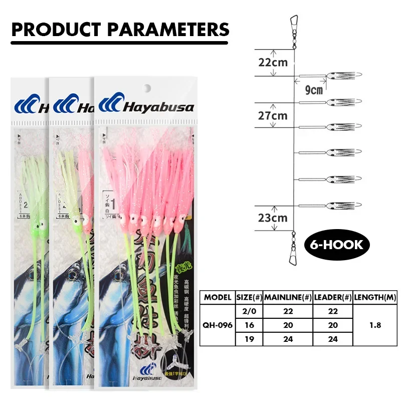 ● Glow tubes added to the leader line significantly reduce line breaks in water while doubling fish-attracting effectiveness