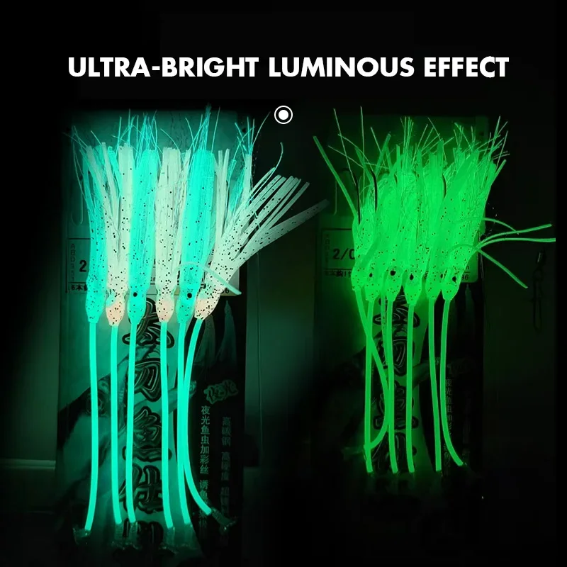 ● Paired with luminous bait worms and glow-in-the-dark colored strands that emit an eerie green light, creating a focal point to attract light-sensitive knife fish with exceptional lure performance