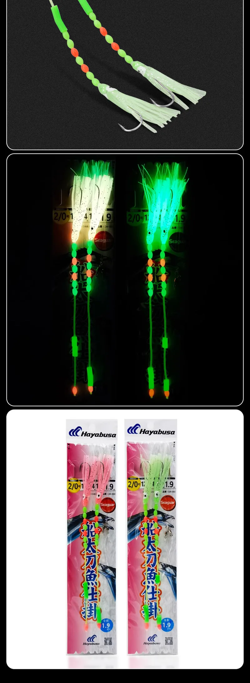 Tanto la línea principal como el líder utilizan fluorocarbono Seaguar con excepcional resistencia a la abrasión, hundimiento rápido, elasticidad óptima, resistencia a la tracción superior y durabilidad resistente a los rayos UV.