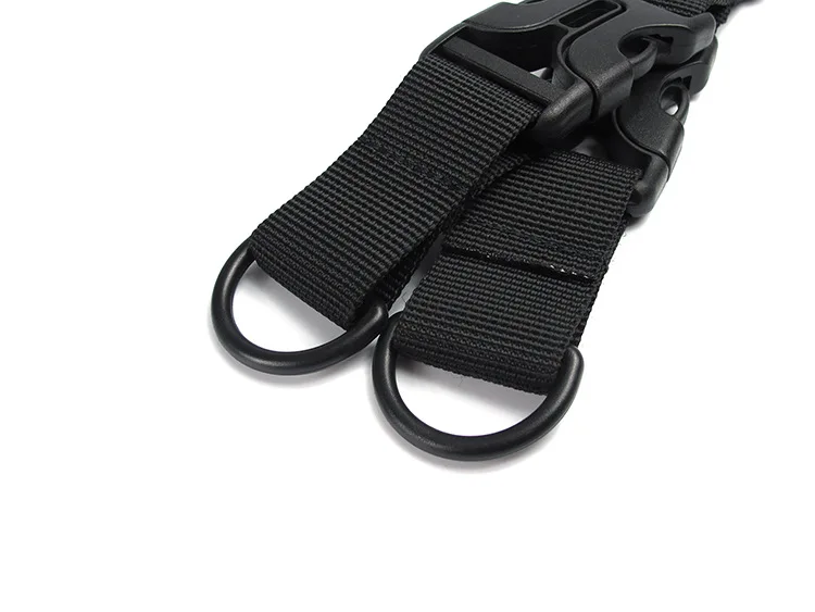 Material: correas de nailon + hebilla de mariposa + hebilla colgante universal + anillo D de acero plástico