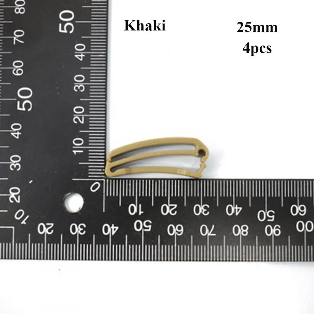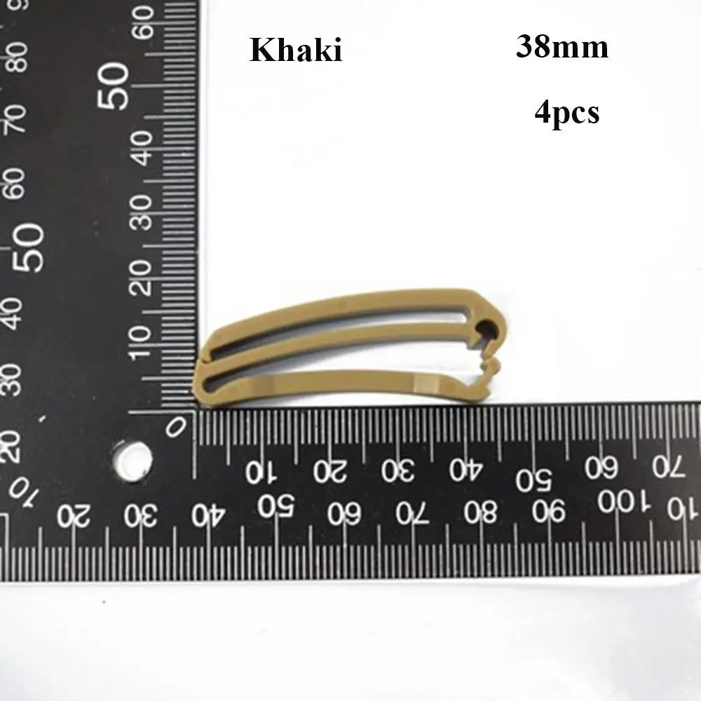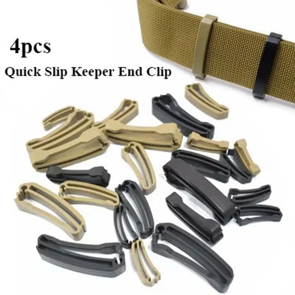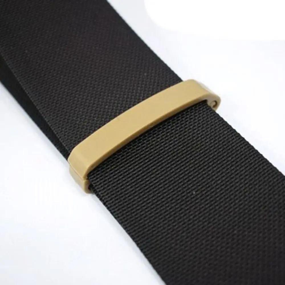 Brand new with high quality For fixing and collecting webbing strap Material: Plastic Color: Black Khaki Suitable strap width: 25mm,38mm,50mm Quantity:4pcs Package Includes: 4pcs Waist Buckle Clips Notice: 1.1cm=10mm=0.39inch. 2.Please allow 1-2mm error due to manual measurement and make sure you do not mind before ordering. 3.Please understand that colors may exist chromatic aberration as the different placement of pictures.